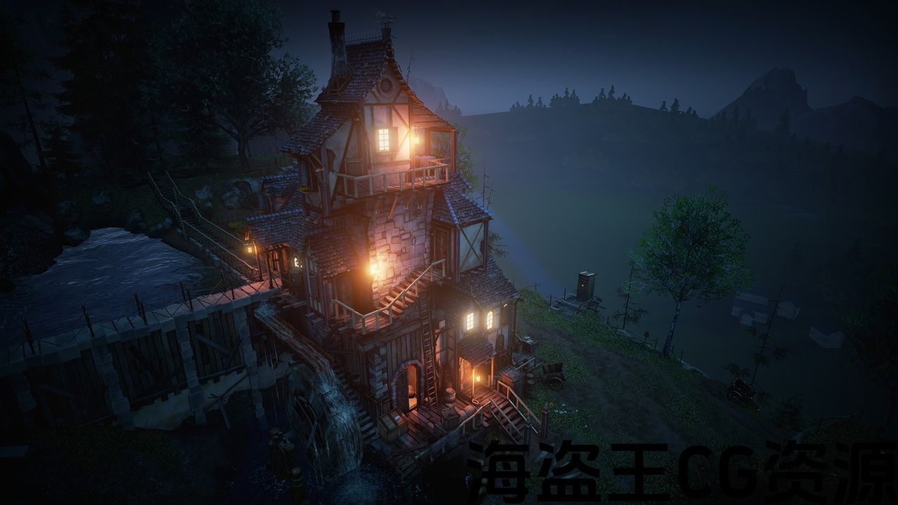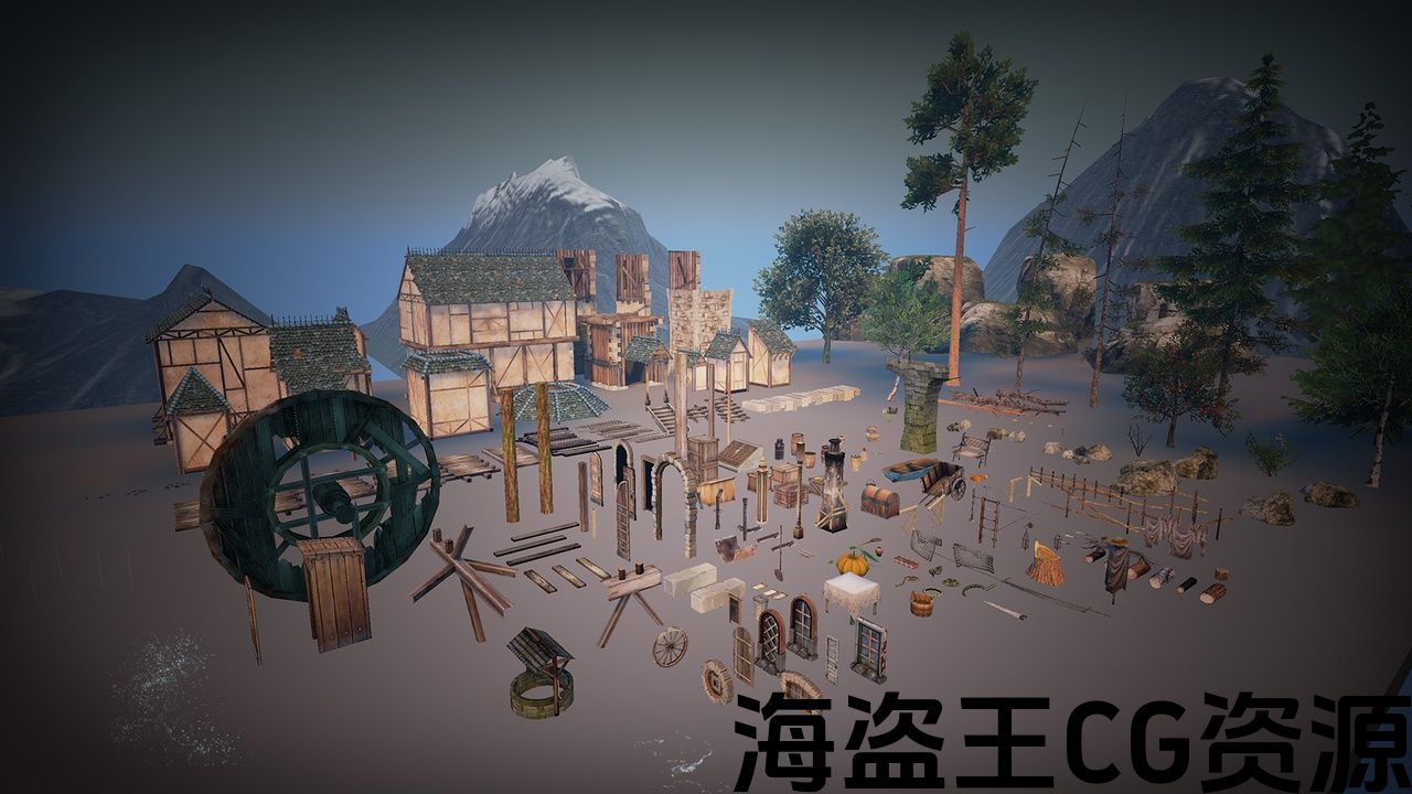 包包括:34个建筑网格(buildigs,platform,stairs)137个道具网格(barell,box,bag,door,winwows等。)24植物网(树,针叶树,花等。)15个岩石网格(悬崖和岩石)2个动画鸟网格水效应7个环境的声音资产的阴影有LOD(资产取决于1到3)116个材料37个纹理(从1024×1024到64×64)范围tris:max-8214,min-2杠杆tris-420designed