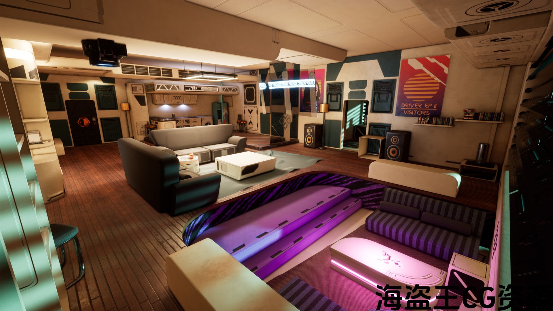 科幻公寓只为基于虚幻引擎的项目设计。 您可以在”Kickstart”包中找到不同的基本资产。 它可以是你的 甜蜜的家犯罪现场. 只是装饰它如何你的愿望或使用 预先装饰 直接映射。