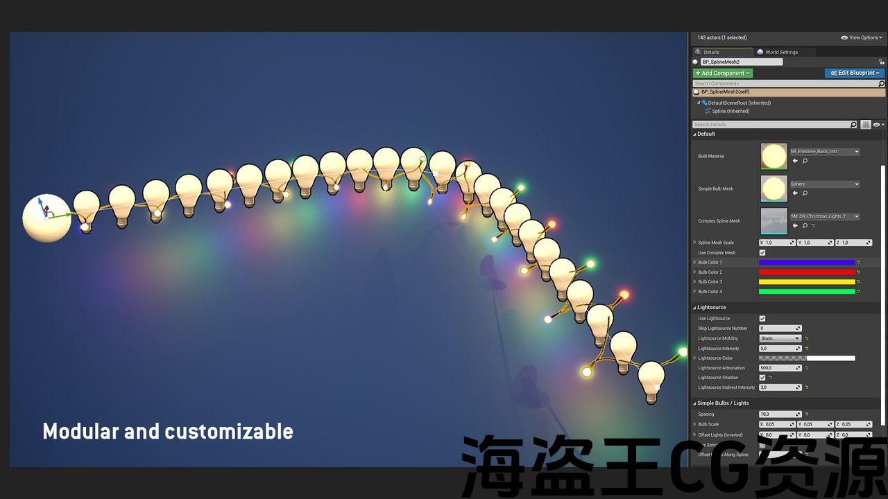 -Modular and highly customizable spline based lights: customize color, size, lighting type, mesh etc.
