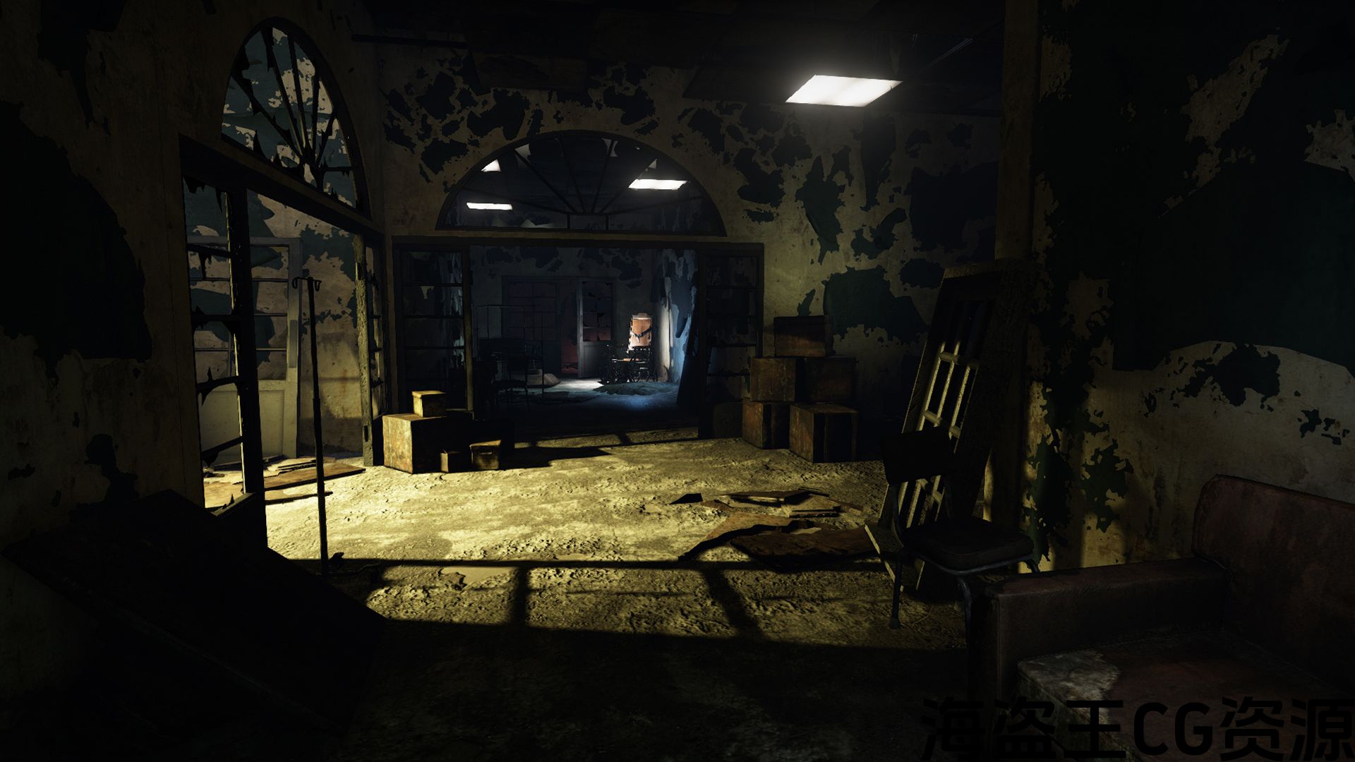 这个包包含模块化墙壁,天花板,地板,楼梯和阳台网格以及用于建造废弃医院内部空间的装饰道具。 该包还包括一组主父材质,所有必要的材质实例,以及示例截图中使用的所有必需纹理。
