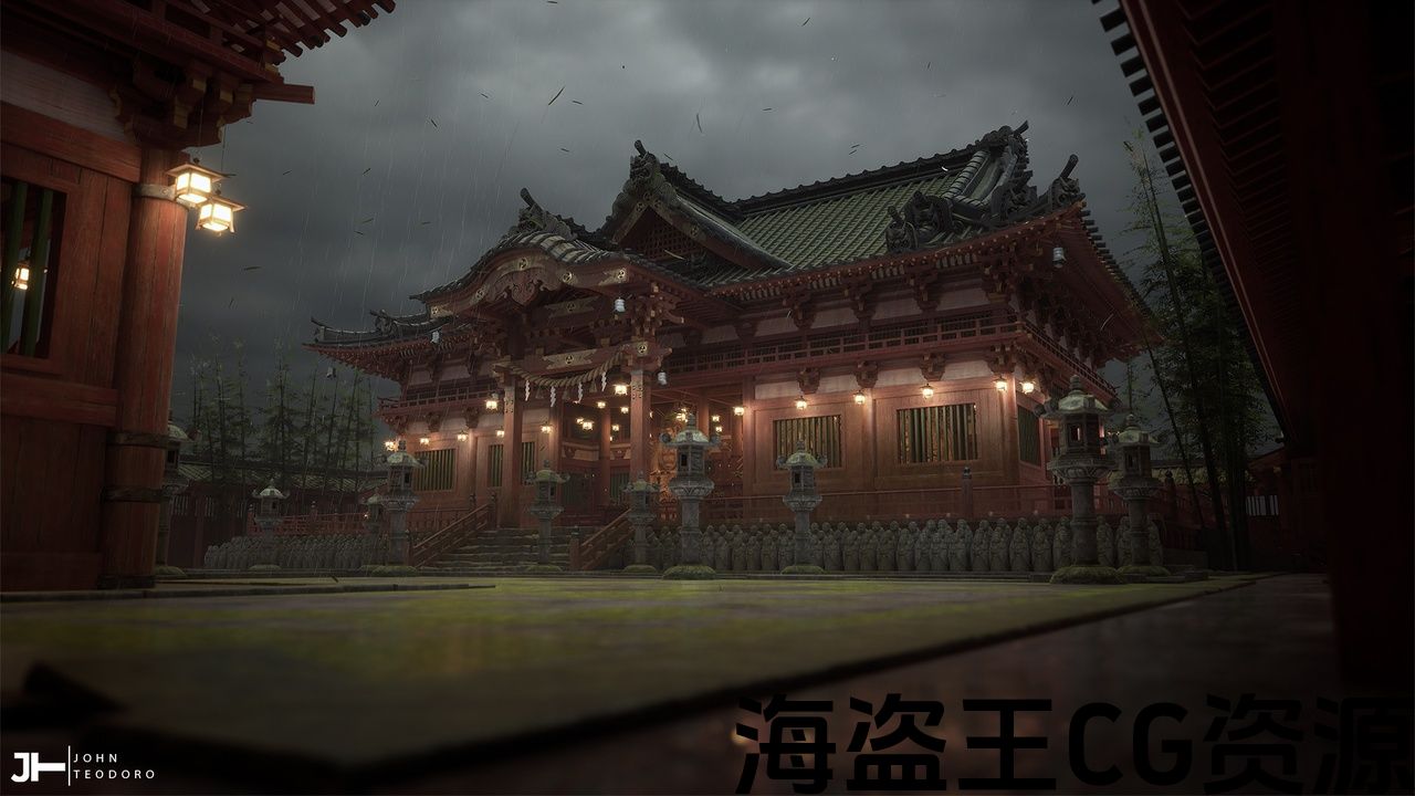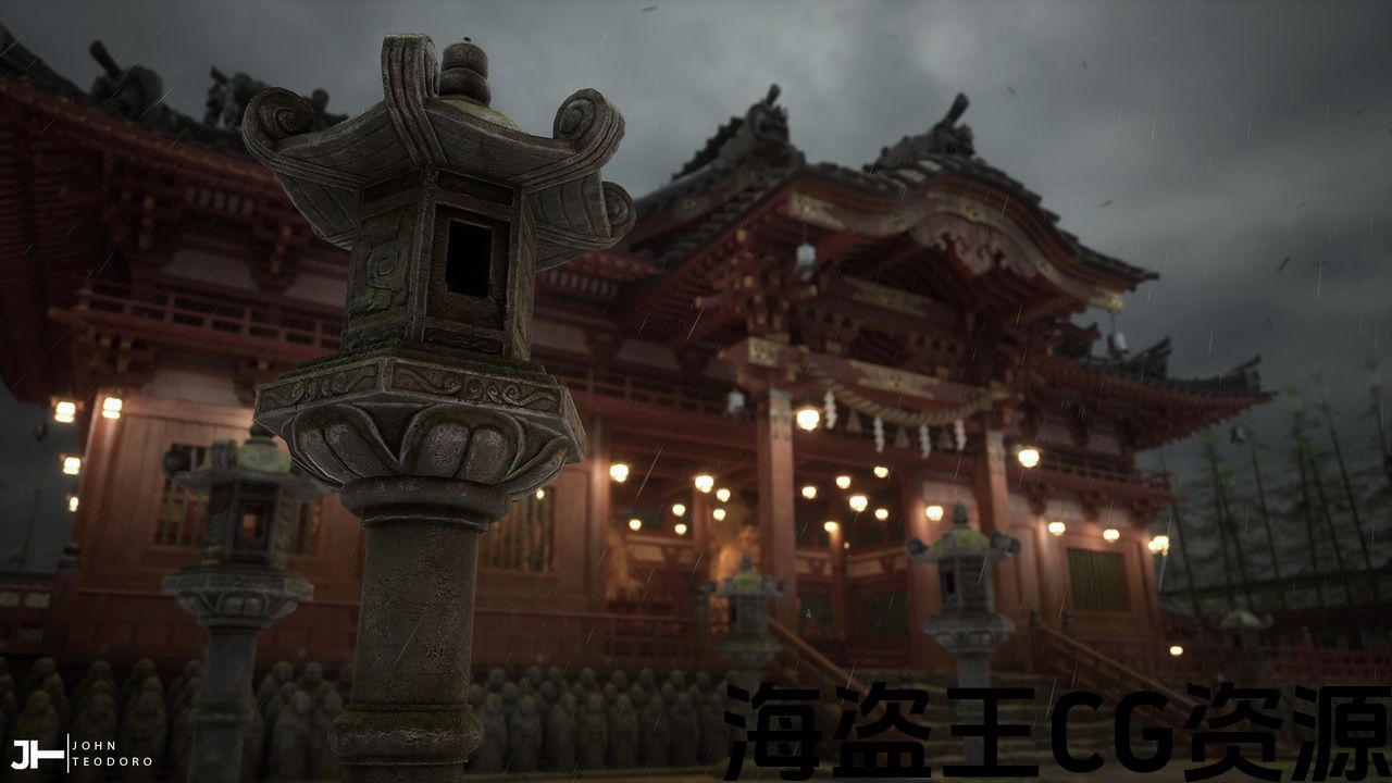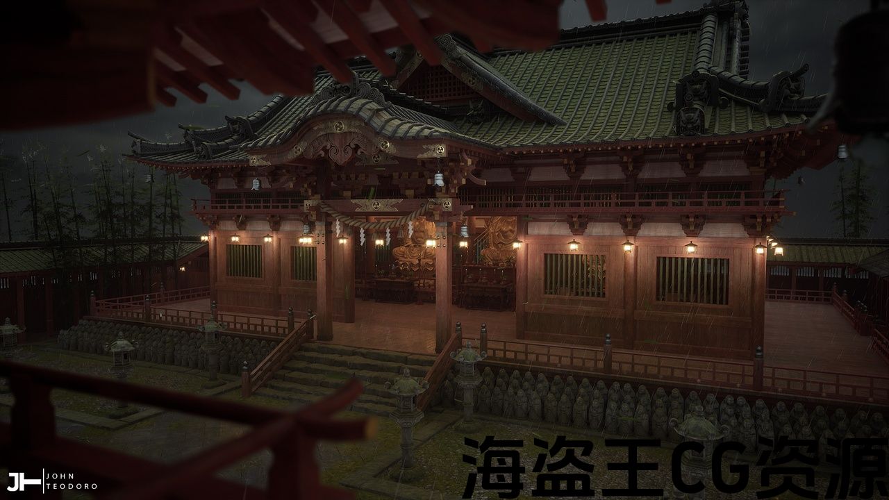 一个非常详细的游戏准备日本环境作品。 主要使用装饰板和可倾斜的材料。