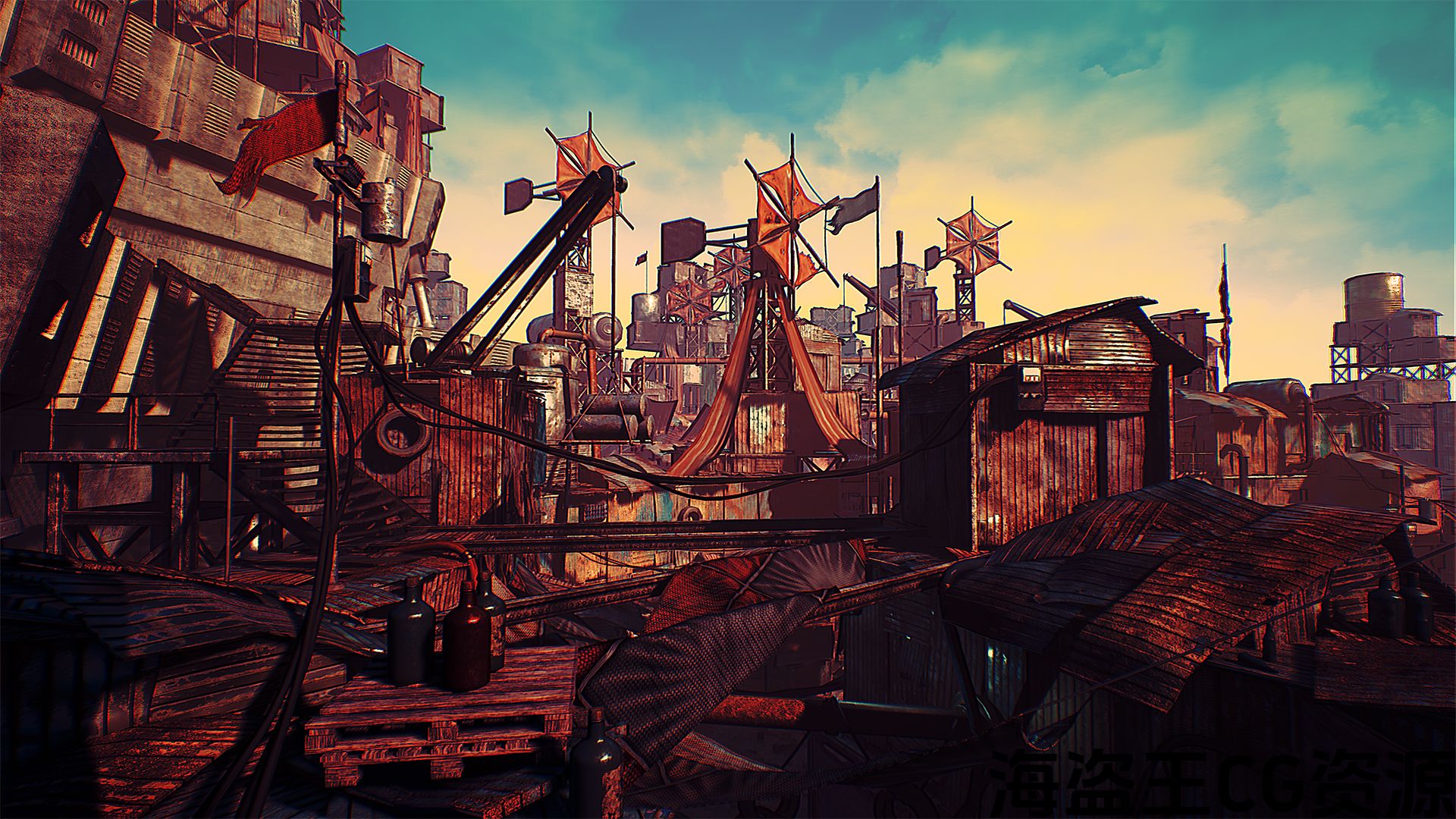 Post-Apocalyptic city comes with over 100 Static meshes (Corrugated metals, Pipes, etc.) and 40 Master Materials to construct your desired Corrugated environment.