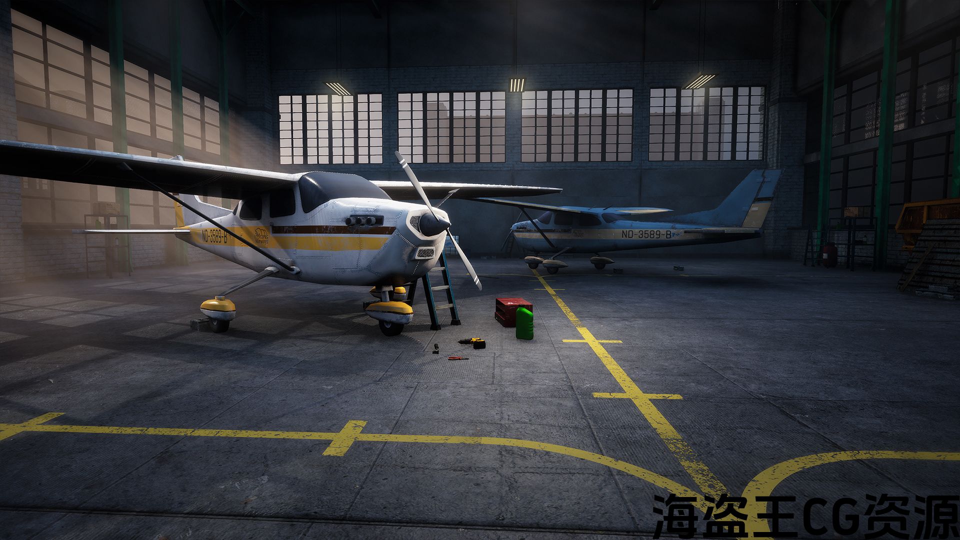 这个包包含一个飞机库,配有飞机和许多道具。 一切都以高质量完成,即使在特写镜头中,每个道具也应该看起来很棒。 平面包含静态和蓝图(动画就绪)版本。 还有许多额外的道具包括-工具,工作台,熔箱,灯具,垃圾Debree,容器等等