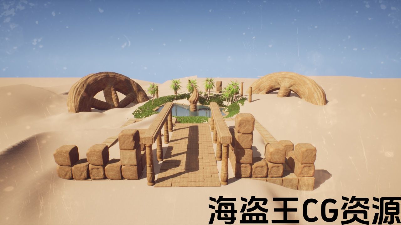 Ancient Desert Oasis Temple Ruins w/Procedural Block Tiling System
