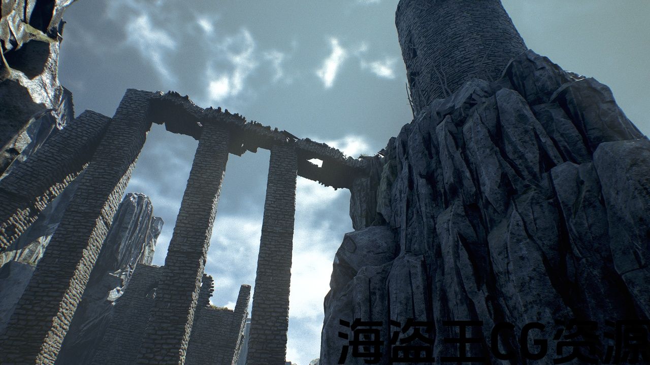 92 high quality models and textures of old buildings, ruined towers, cliffs, foliage, vines and wooden planks.