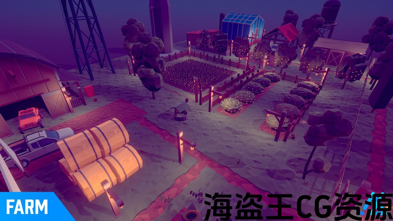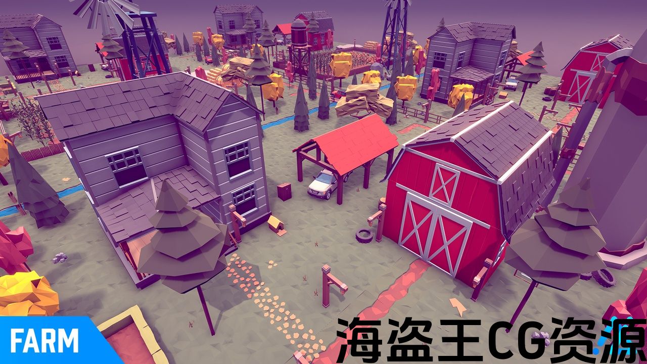 Large low-poly farm that includes everything you need to create large and interesting levels.