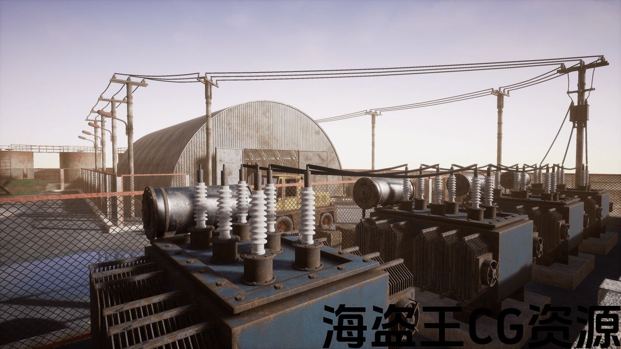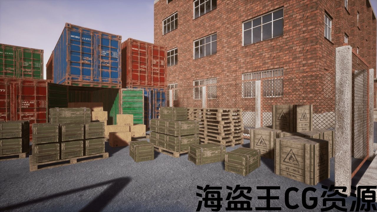 高品质完整的工业场景与模块化建筑和机库(与内部)+不同的道具。