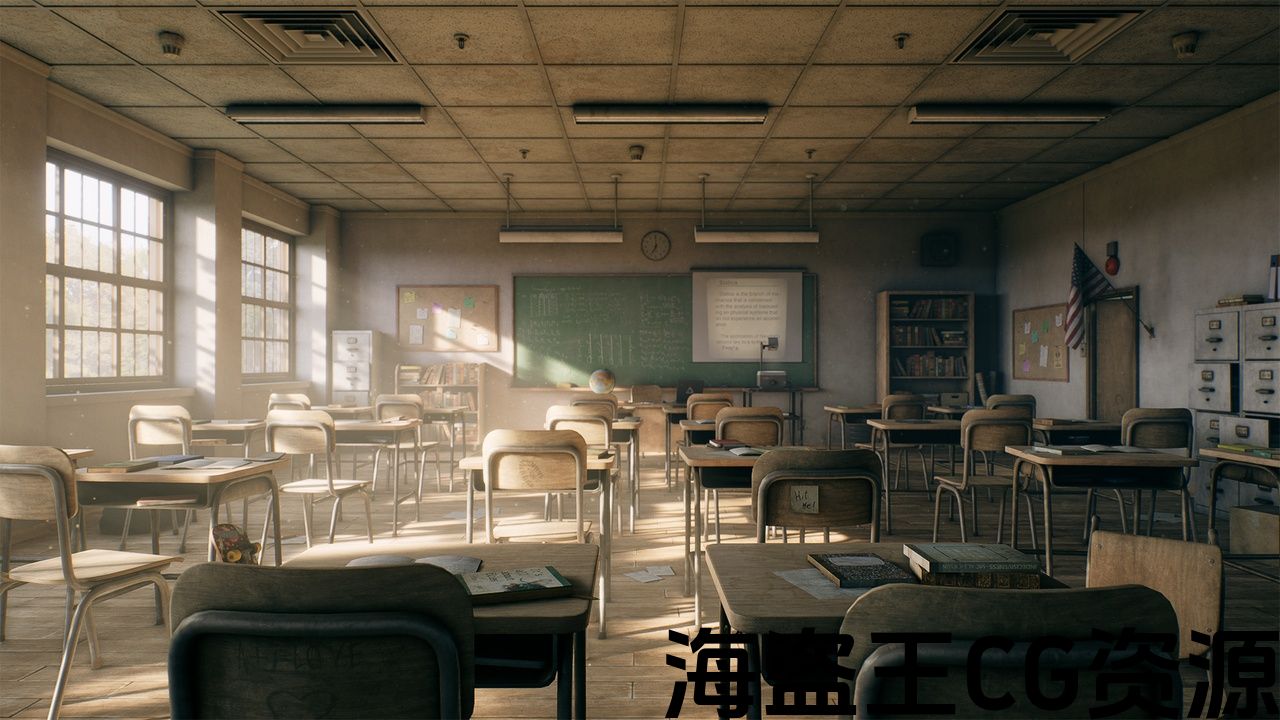 这个包的特点是一个现实的老教室从美国的学校场景,包含超过200个资产,如椅子,写字台,黑板,地球仪,门,墙壁,背包,袋子,纸,书籍,笔,投影仪,计算器,和更多。 墙壁、地板和天花板是模块化的,允许您快速、轻松地创建具有不同资产组合的自定义场景。