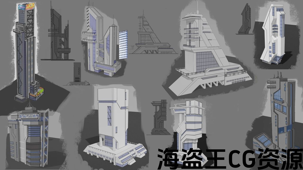 每个建筑只使用一个独特的AOmap,使它易于使用和定制您的喜好。 所有的建筑都使用一个纹理的混凝土和一个泄漏纹理. 它们可以根据自己的口味被任何其他替换。