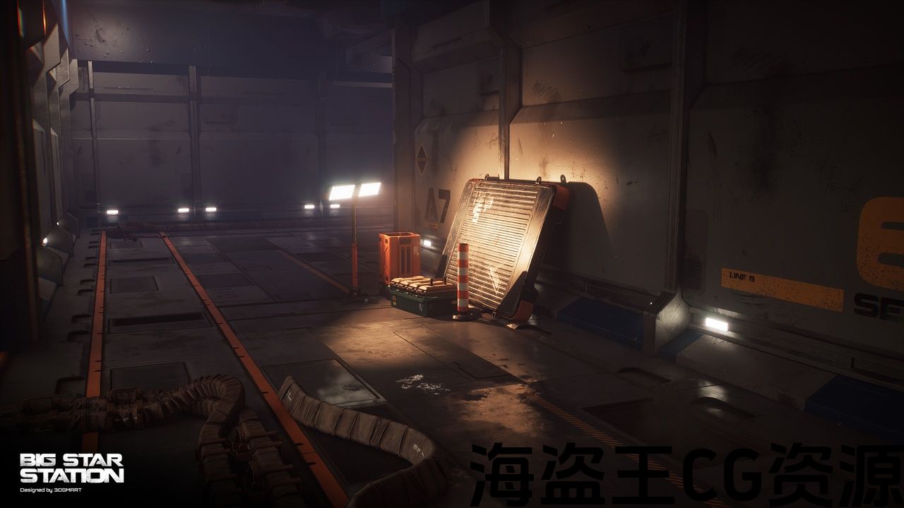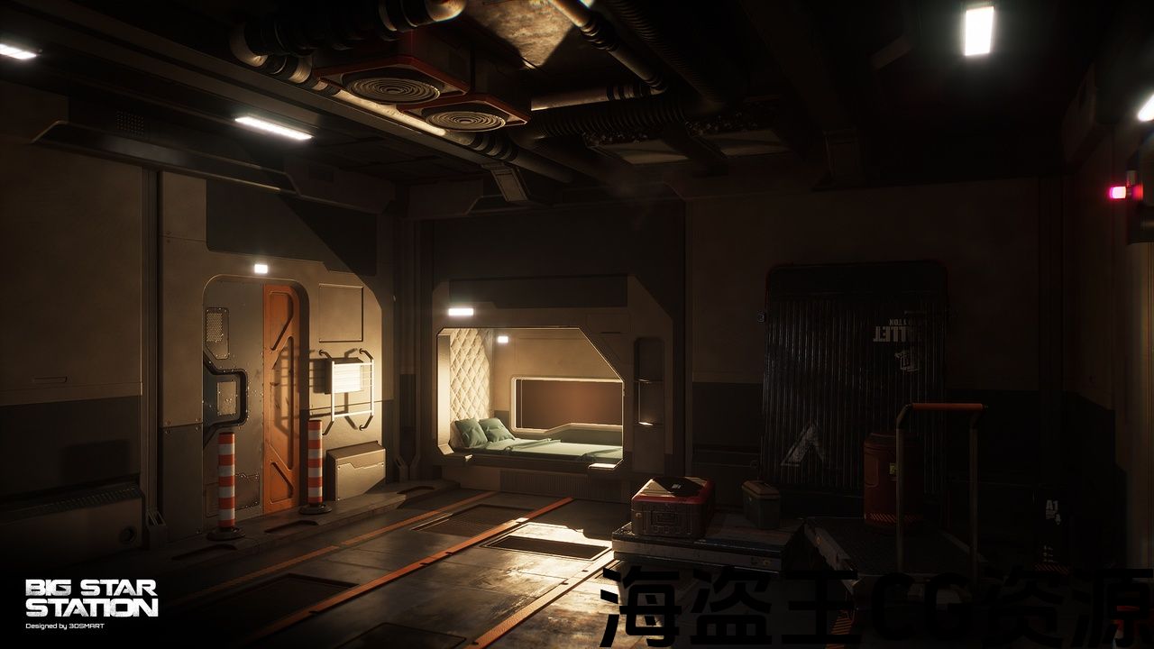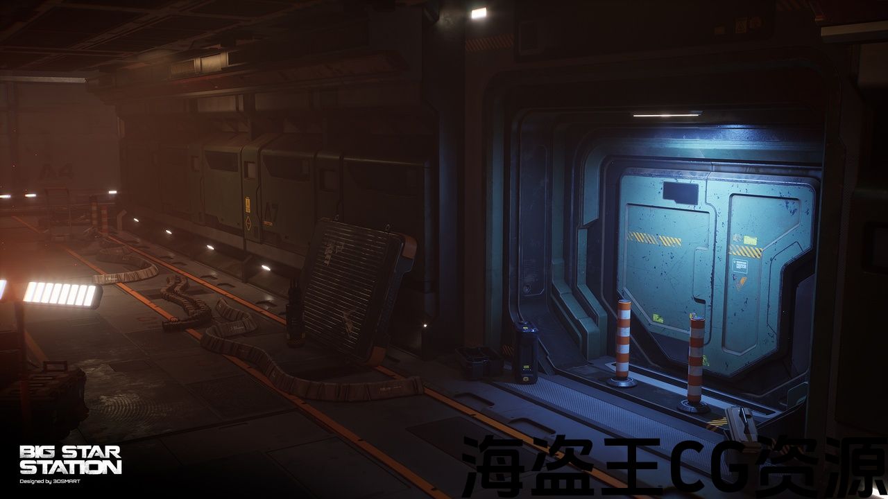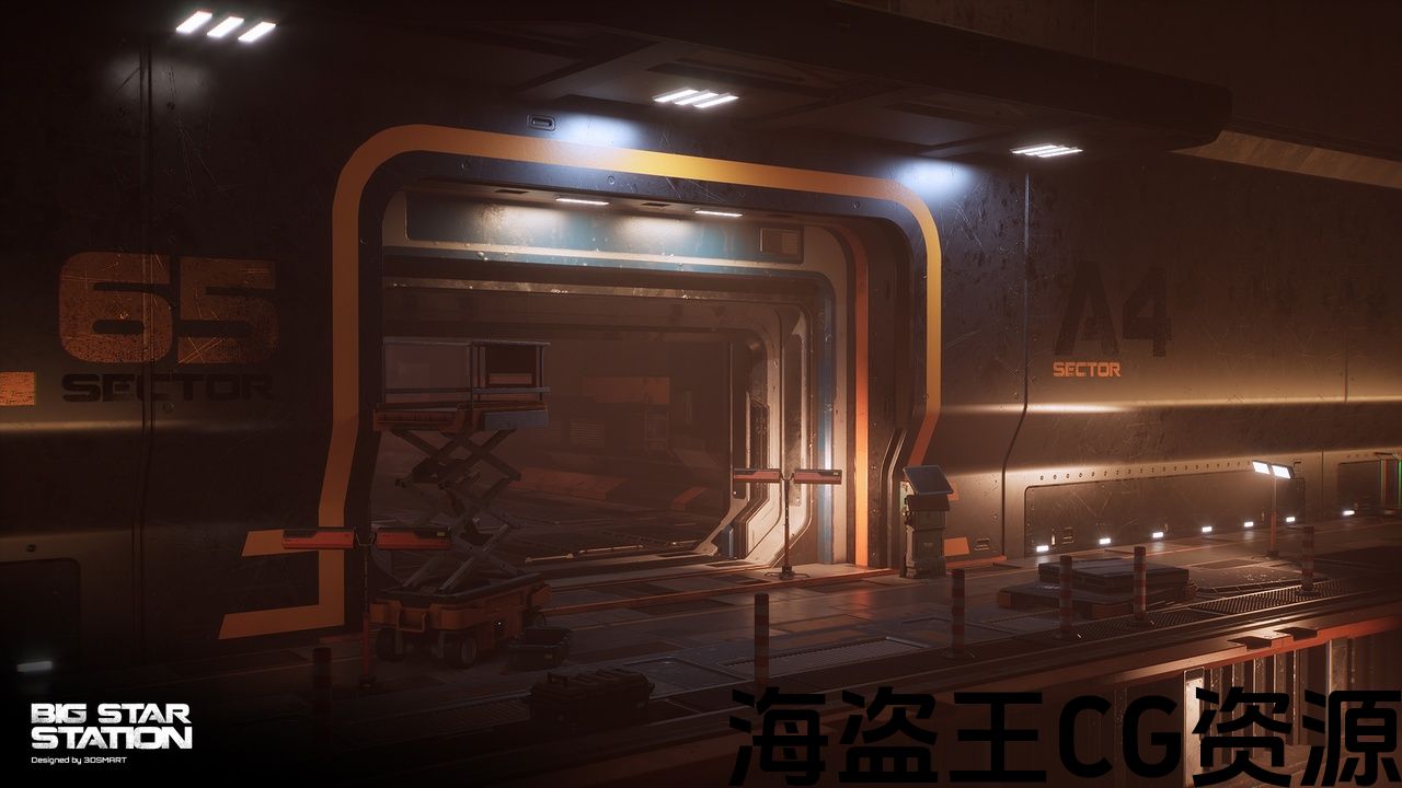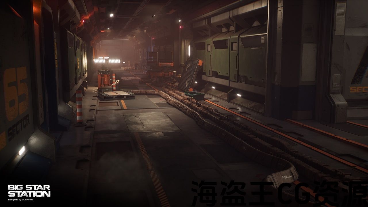 一个空间站,有许多不同的部分,包括大量的房间,这些房间与由模块化部件组装的详细走廊相连,还有一个巨大的机库,可以用作火车站或宇宙飞船停靠区。 由于我对作品细节的痴迷,我在Solidworks中制作了几乎所有用于其他行业设计工程零件和产品的高聚基础资产。