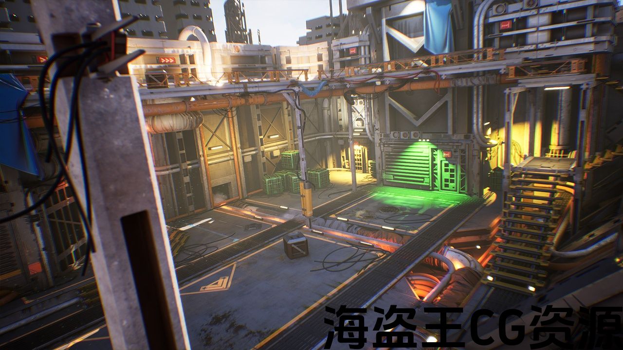 Kitbash一套关卡模块和道具,用于构建逼真/科幻和赛博朋克环境