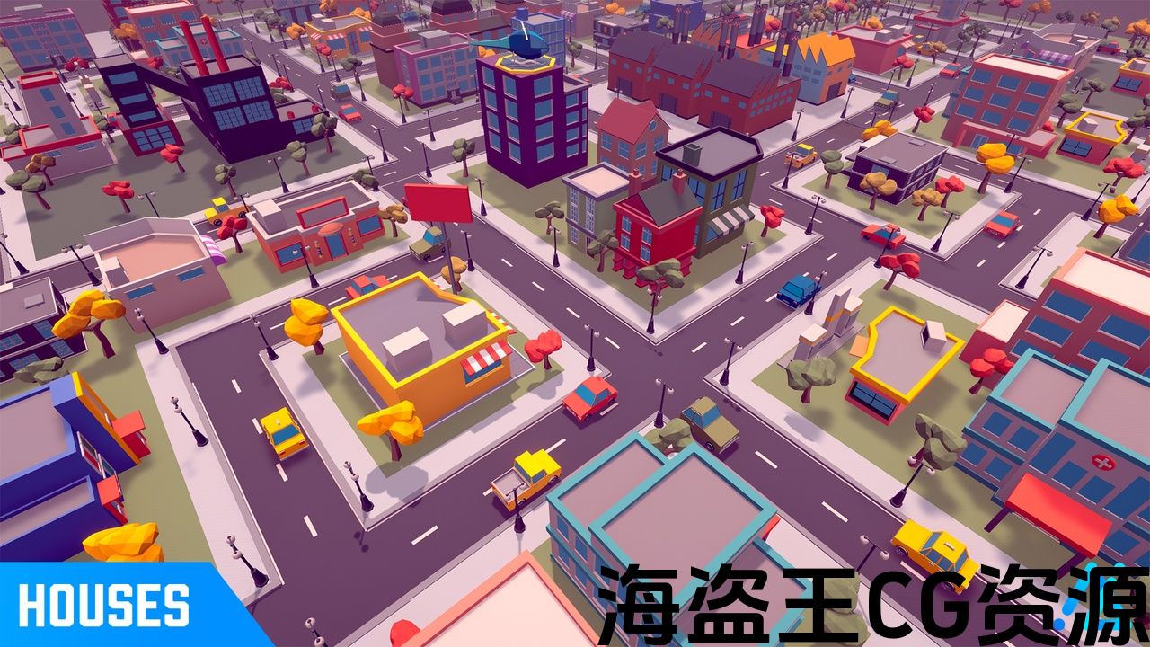 大型低聚风格化城市,包括创建大型有趣关卡所需的一切。