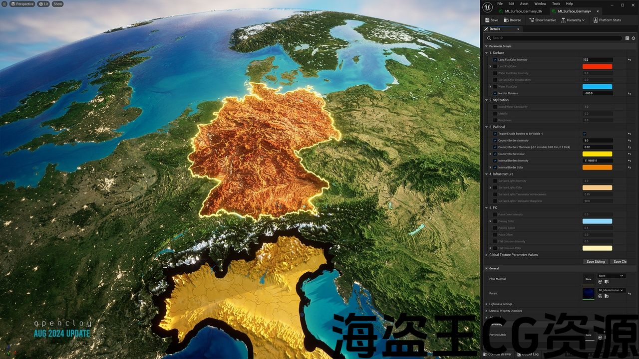 Blue Gem Earth旨在帮助在地理导向的游戏,YouTube视频和编辑演示中讲述更好的世界故事。 它采用手工制作的彩色地图,复盖在纳米驱动的地形数据上,它的设计与光线追踪,以实时运行。 蓝色宝石提供了视觉上引人注目的,垂直夸张(~11x)或现实的地形和测深高度(2个不同的层次),增加了深度和活力的陆地和海洋地板的外观,因为阴影投在表面。 此外,它利用Epic的大气照明系统,允许根据太阳角度进行动态照明和阴影调整,根据光线能见度打开和关闭城市灯。