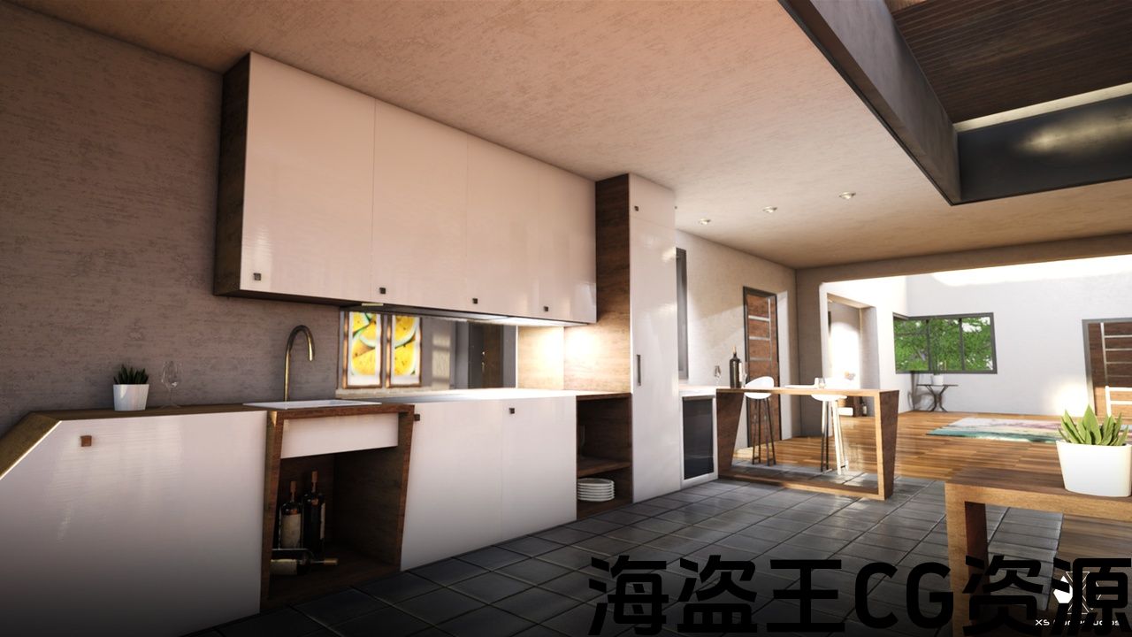 The whole scene is explorable in first person, featuring fully interactive, animated door blueprints.