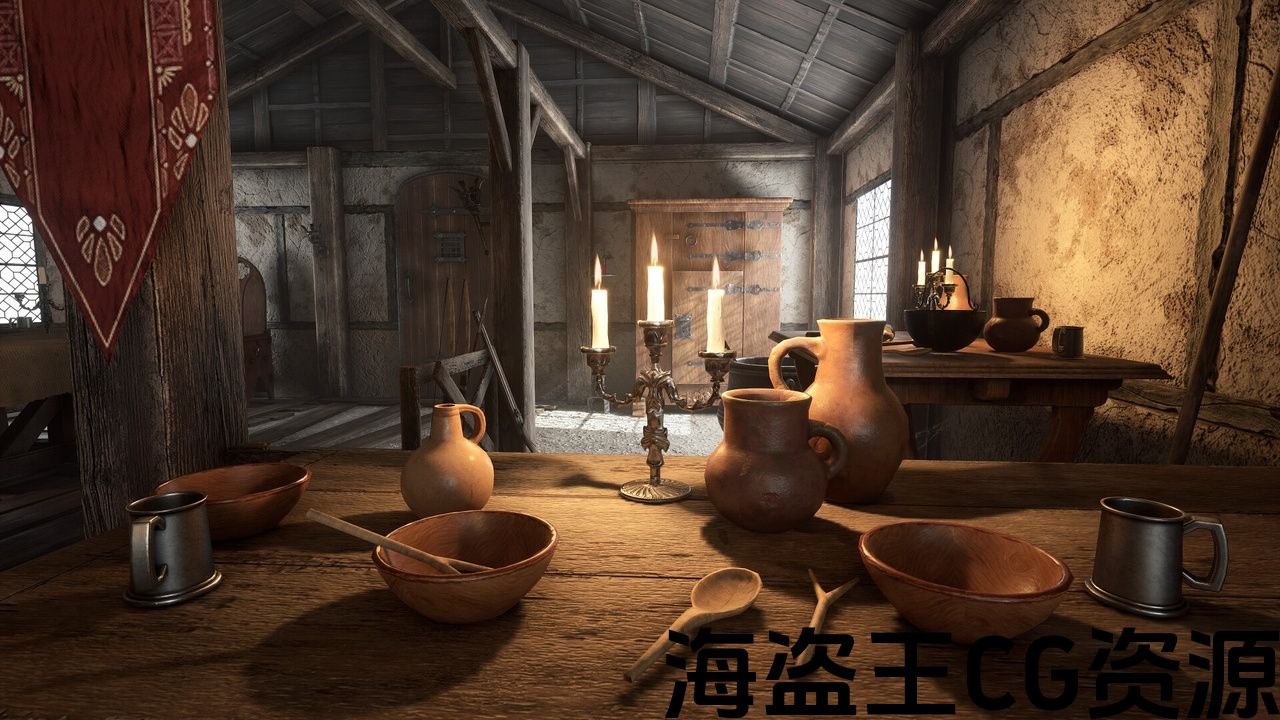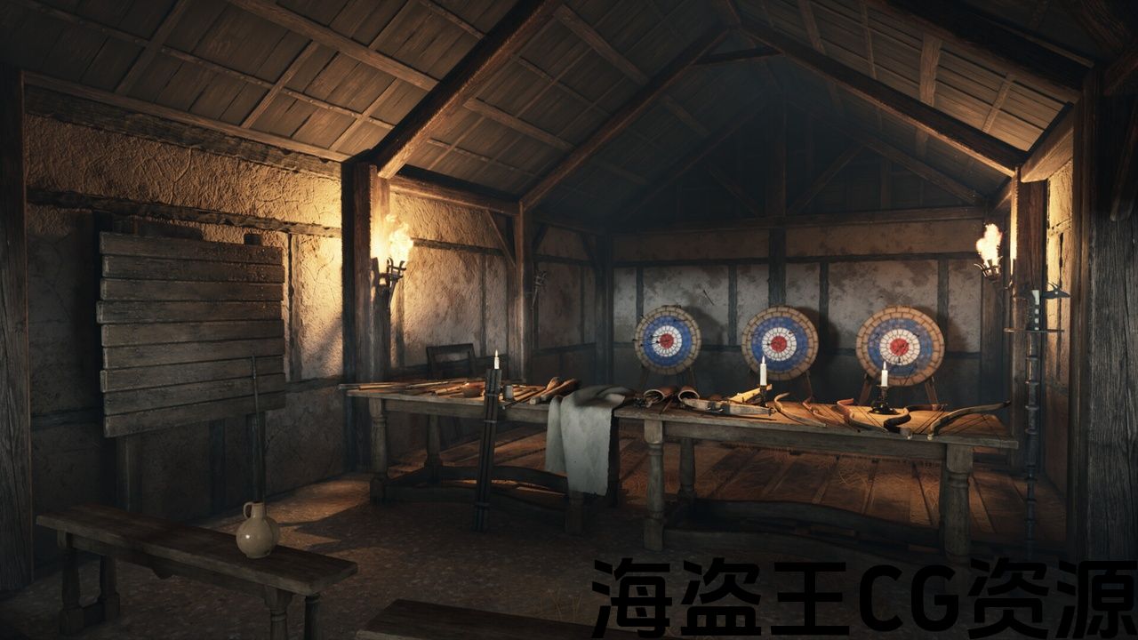 中世纪的场景位于某种射箭的房子。 它包括大约70个独特的道具,主要用于室内. 这些道具可以在幻想或现实历史风格的游戏中使用。 该包还包含5种类型的普通弓,弩,箭头(8种类型的箭头)和螺栓。 可投掷武器也可用(6种类型)。 有些道具有可用于动画的组件。