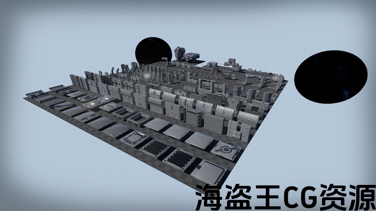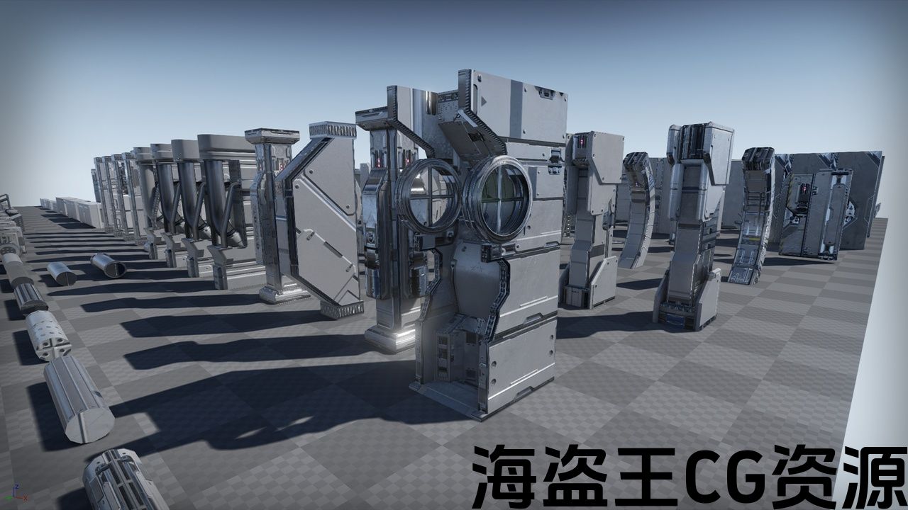 *”科幻道具包”是一套模块化的PBR资产,用于创建您的科幻室内、走廊等。