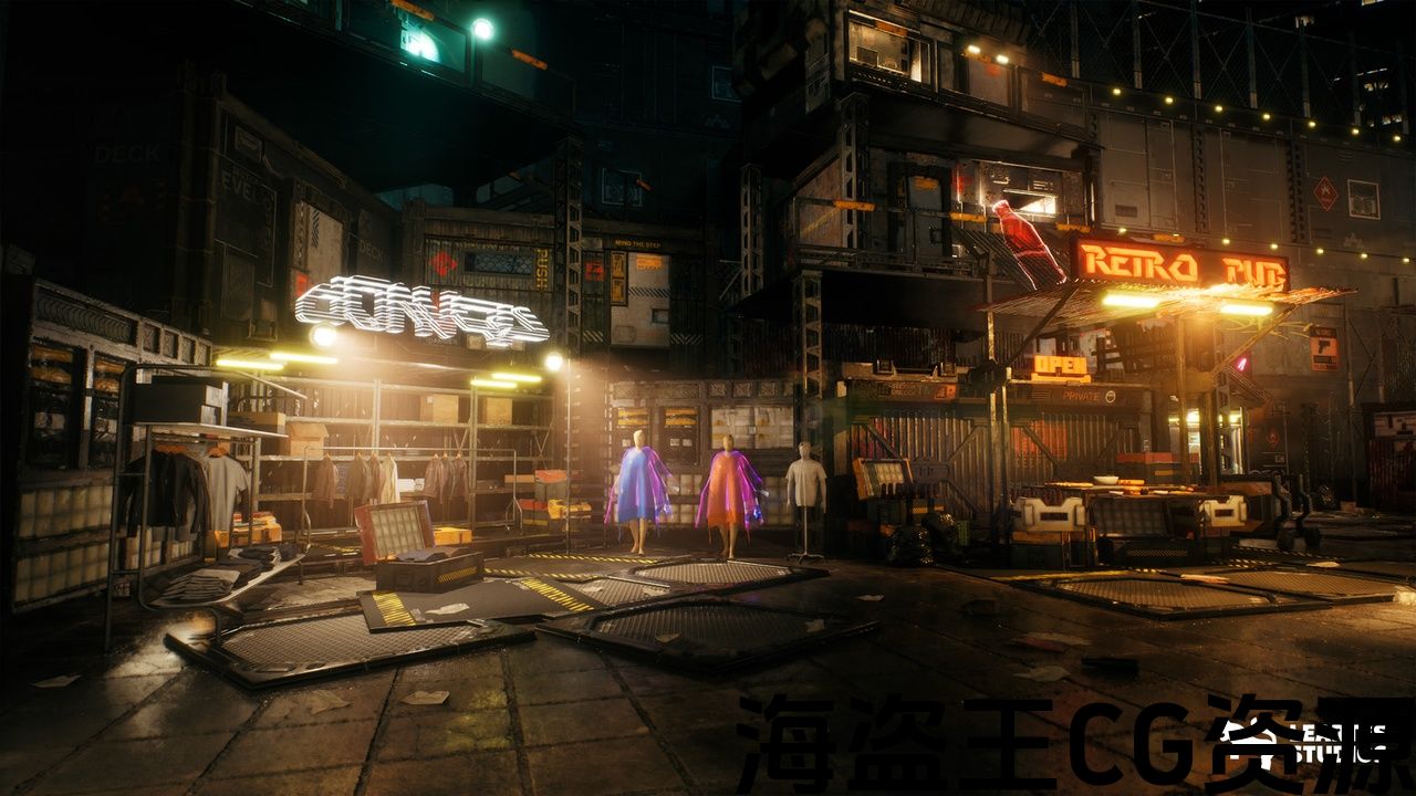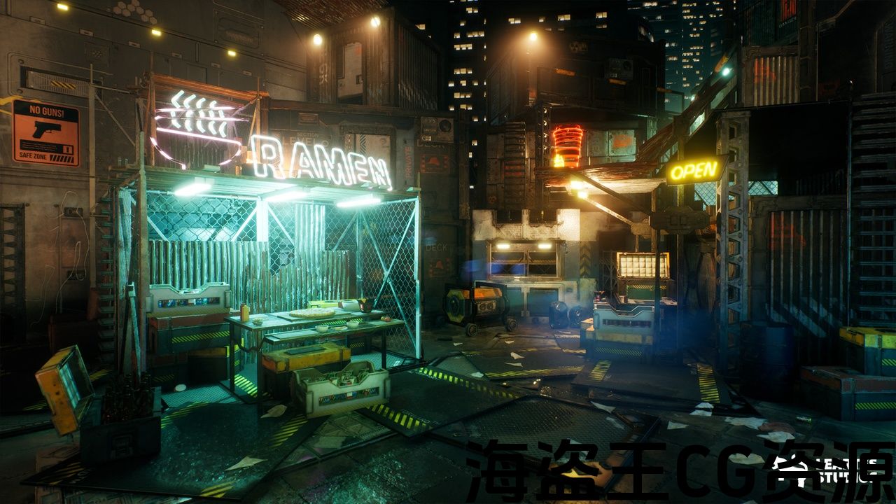 赛博朋克屋顶市场环境与230个独特的网格. 包括所有展示和高质量的资产。 具有良好的细节水平和优化的游戏准备项目。