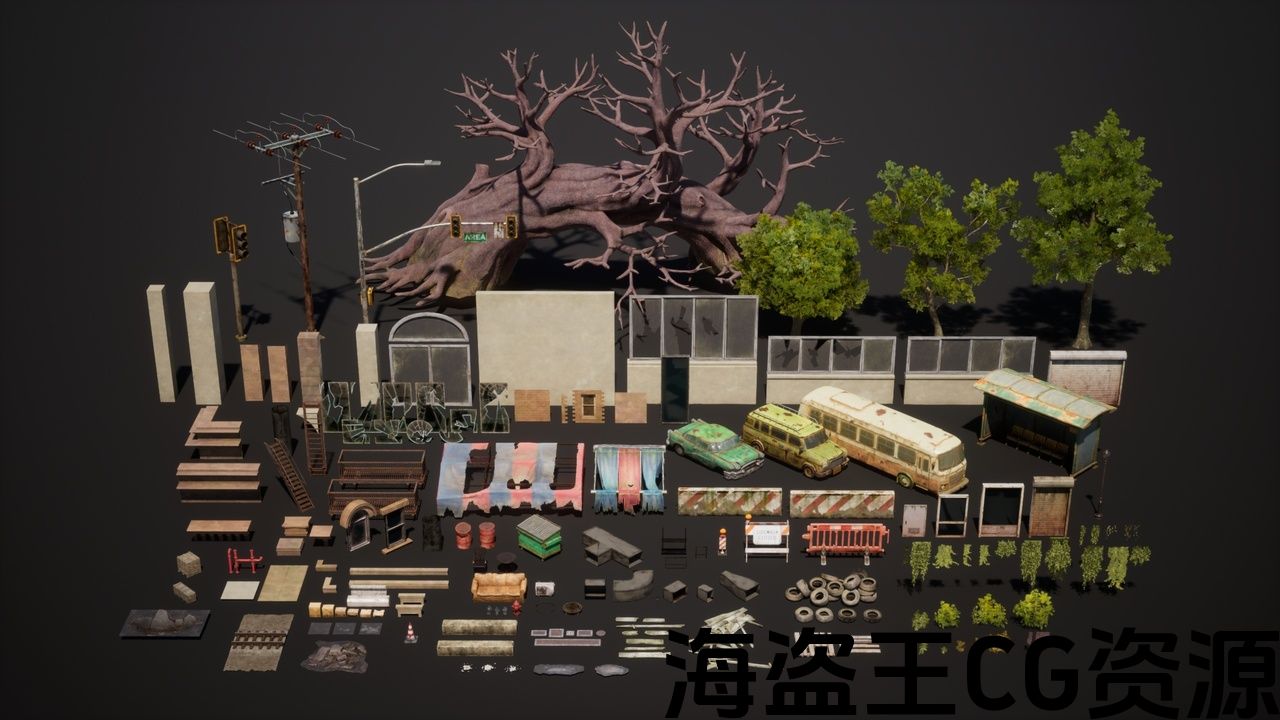 我们的后启示录城市环境的UE5的完整包包含了超过205个模块化的现实PBR,游戏准备网格和材料,从道具到建筑物等等,适合创建风格化的ENV。