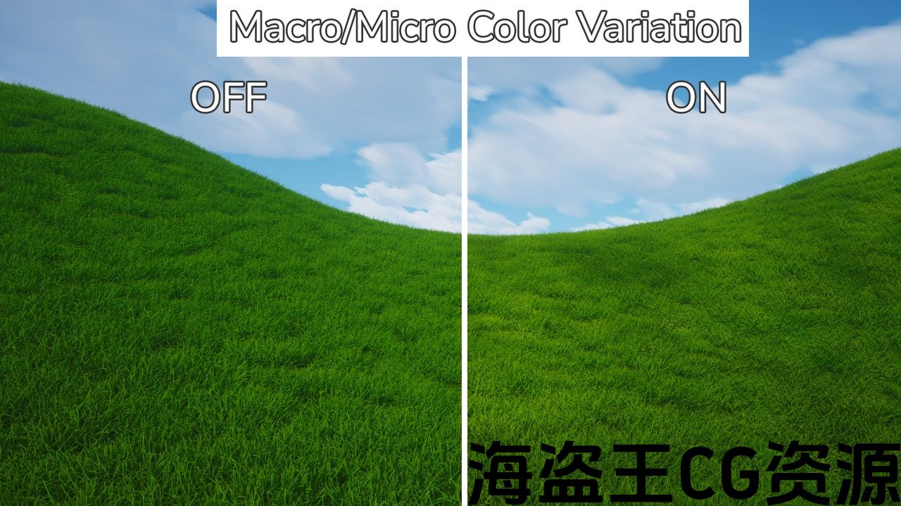 Nanite Grass V3 Update: Increased grass density; grass won’t disappear when far away. Added subsurface scattering and improved grass lighting. Enhanced Wind Breeze, grass movement is more grounded and less deformed, with adjustable breeze interval parameters to reduce frequency.