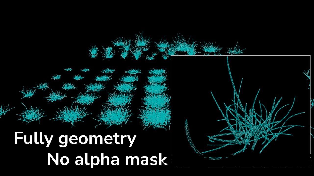 Nanite grass with full geometry and no alpha mask material.