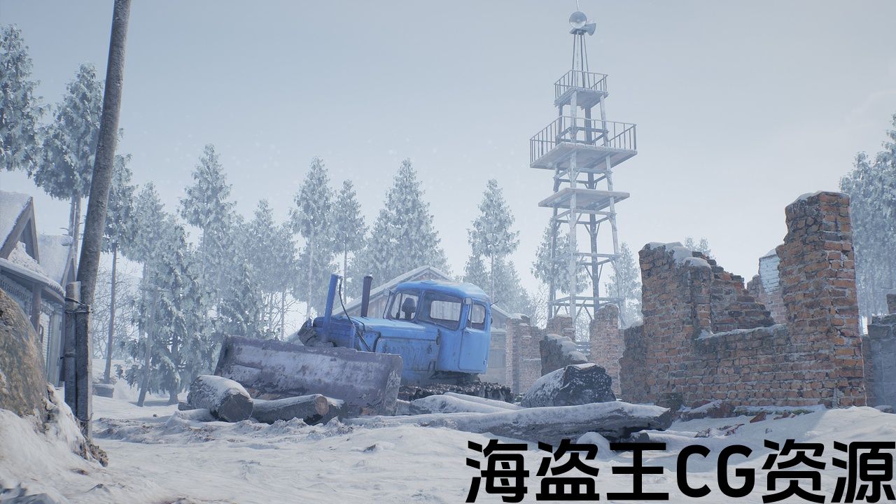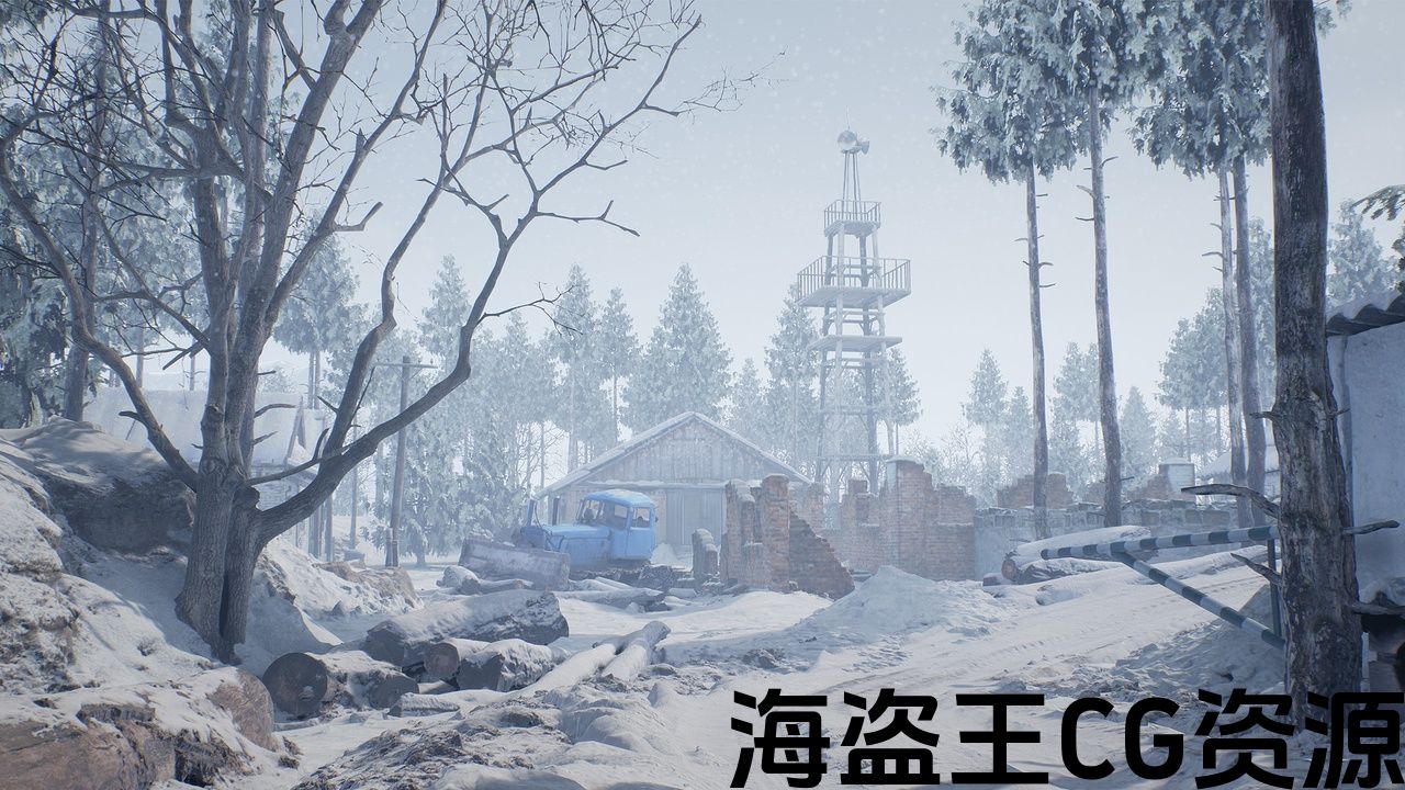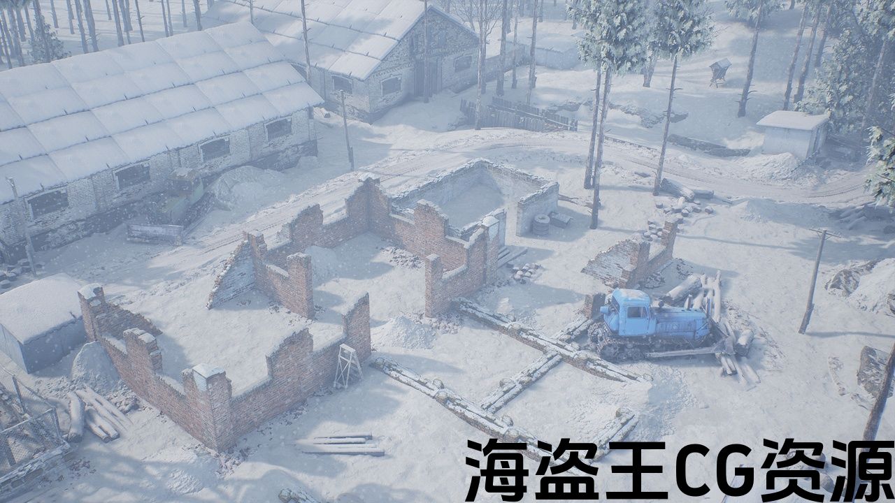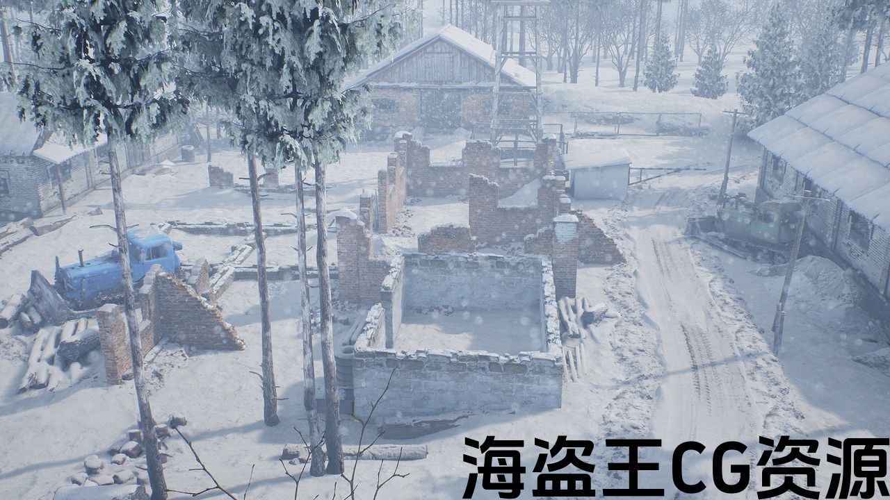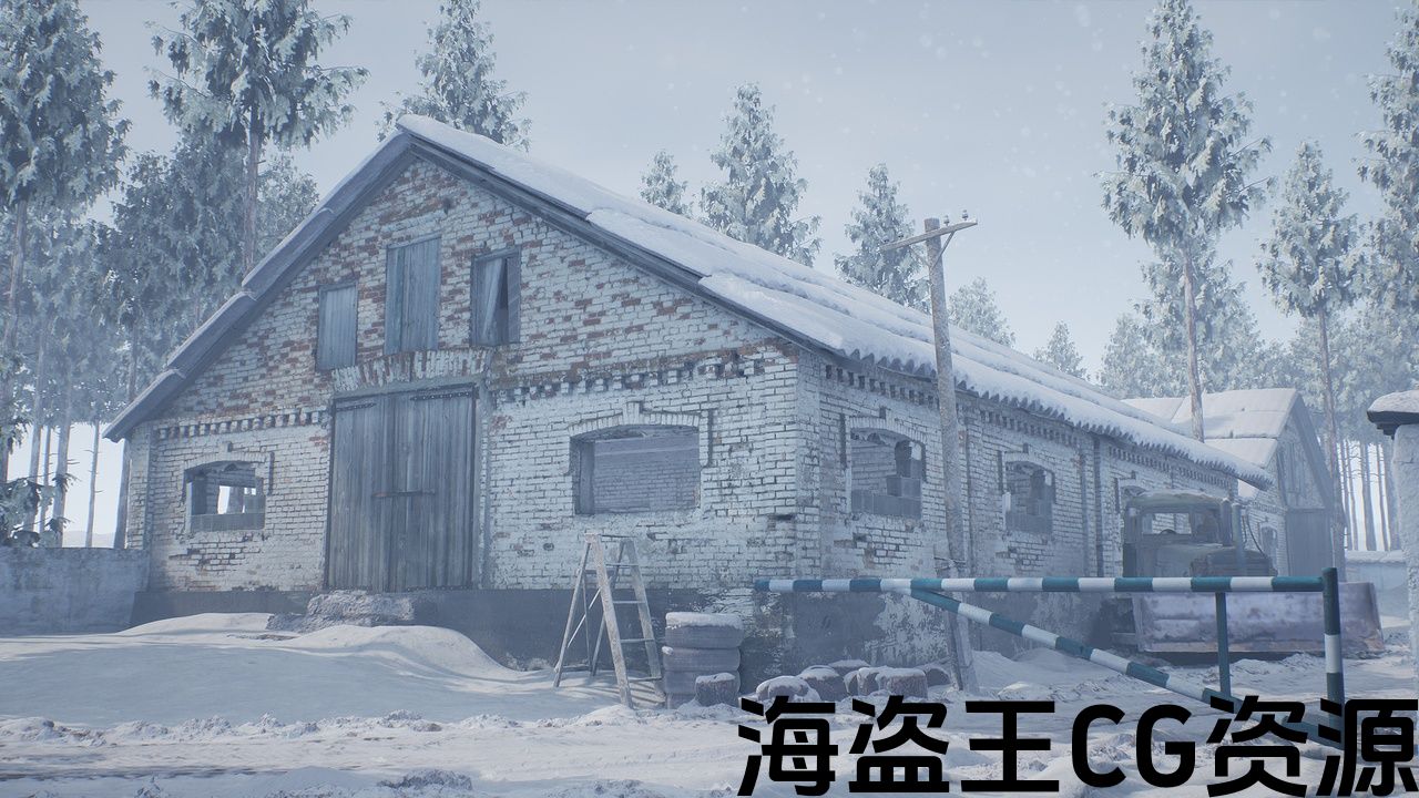 旧的废弃冬季基地环境。 包括photoscanned游戏准备建筑物和道具。