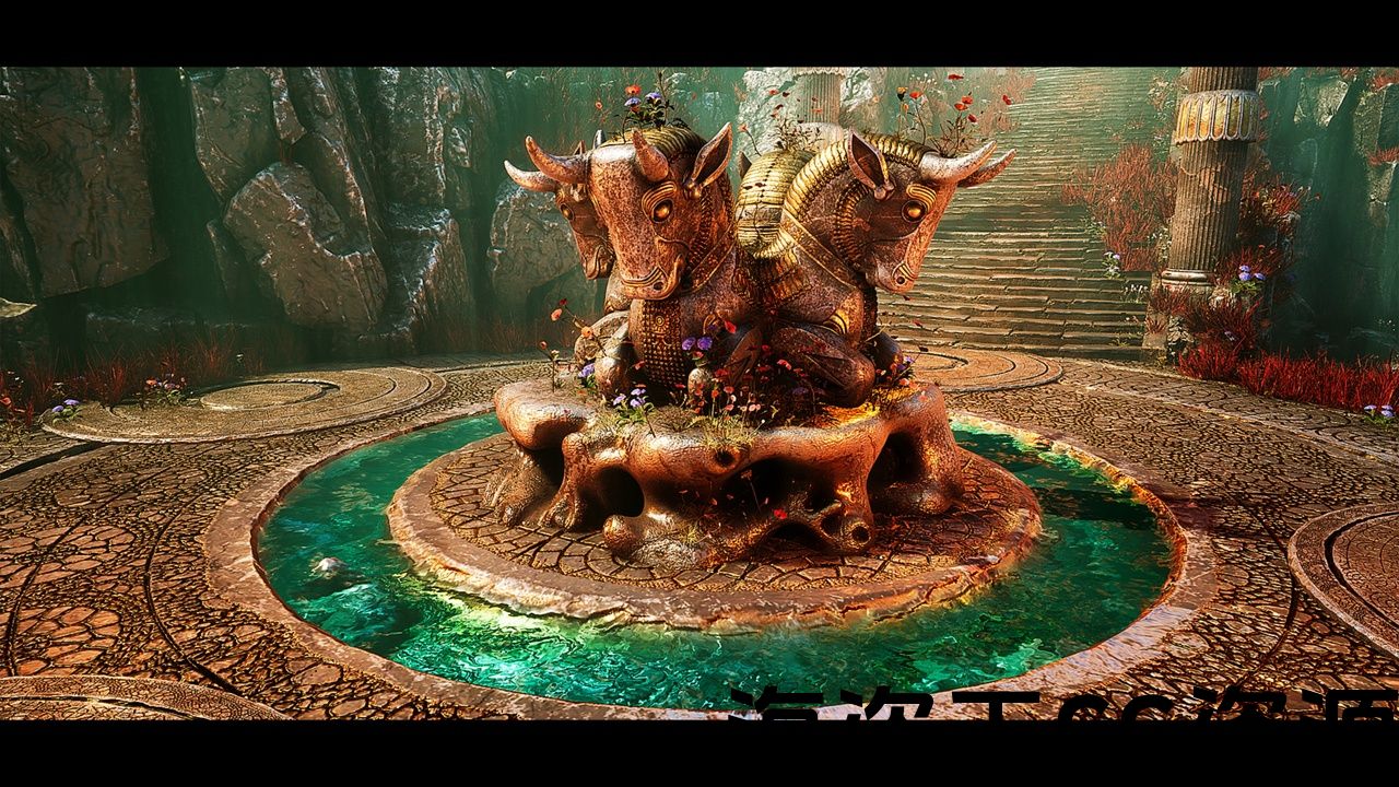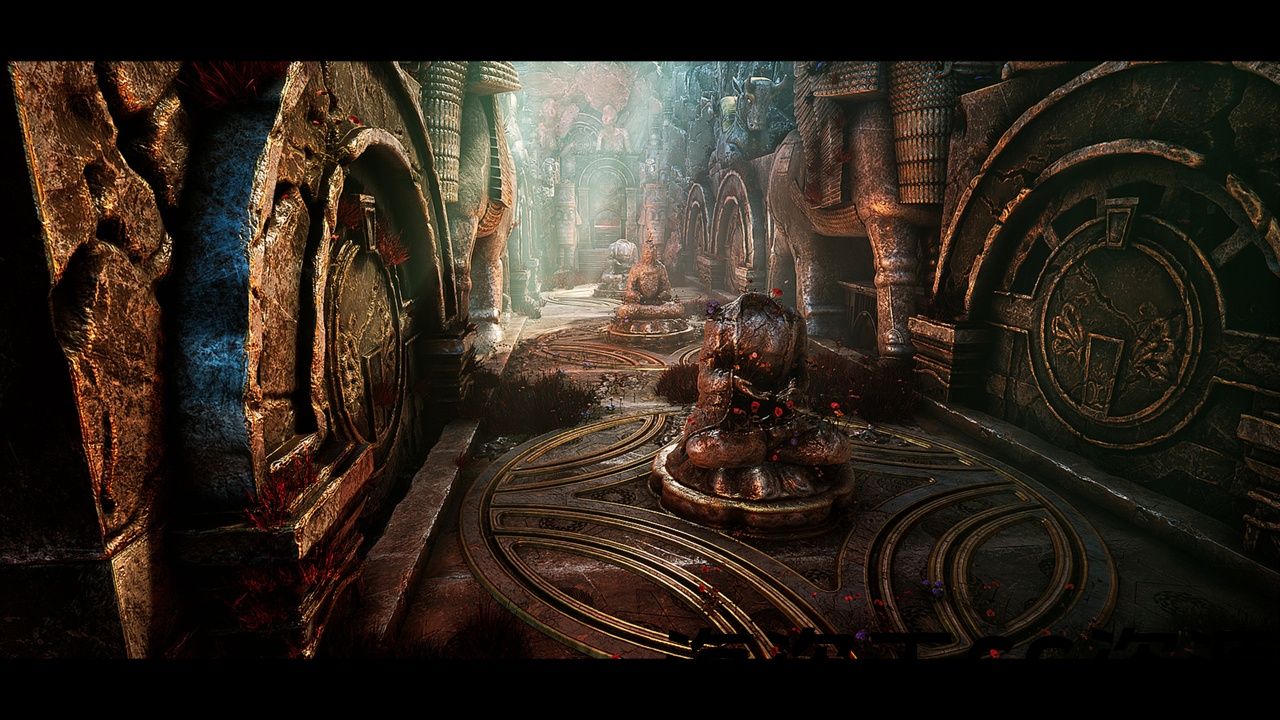 目标是获得现有古代文明的神话设计,并将其与一些幻想设计相结合。 资产是从仍然矗立的古城遗迹的参考图片设计和雕刻而成,包括壁画和雕像,柱子,柱头等