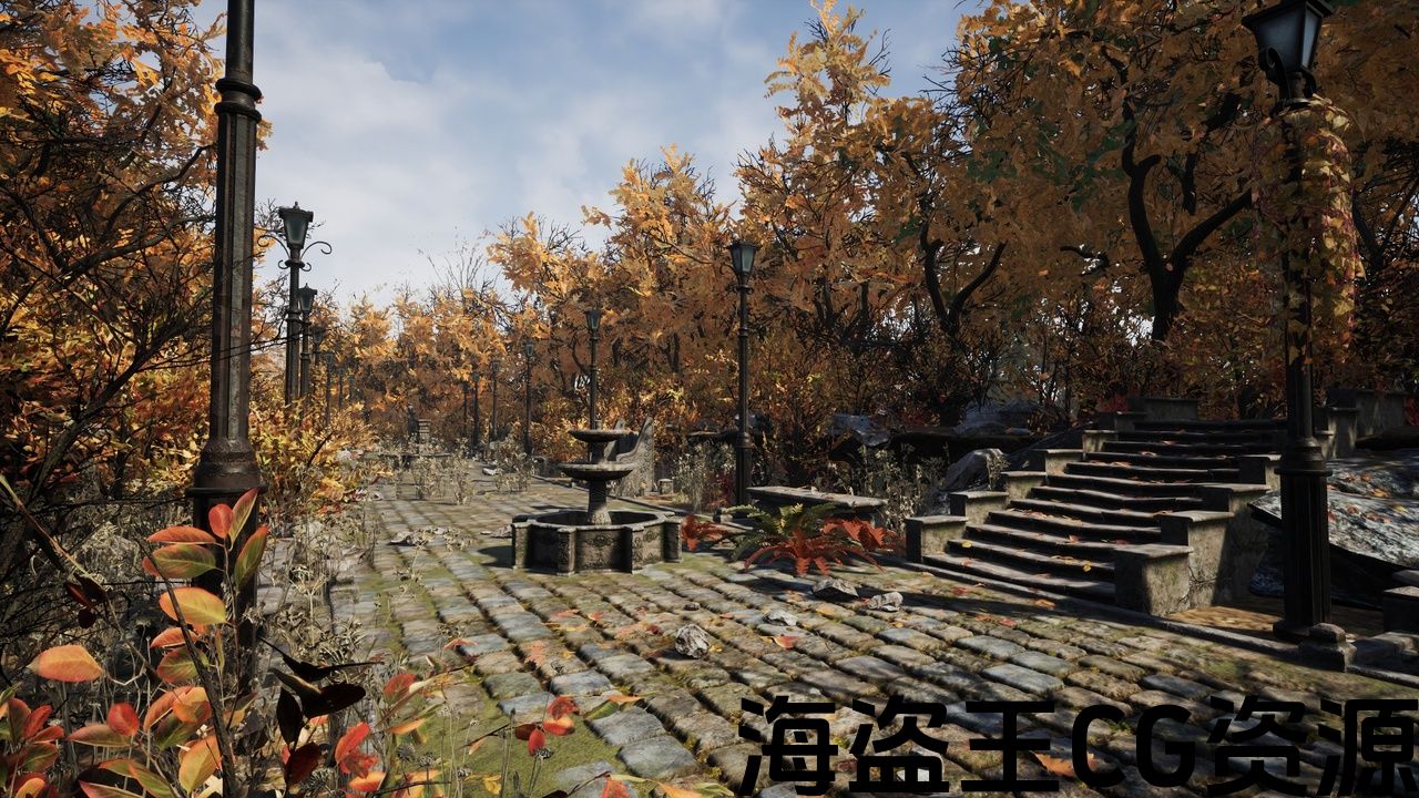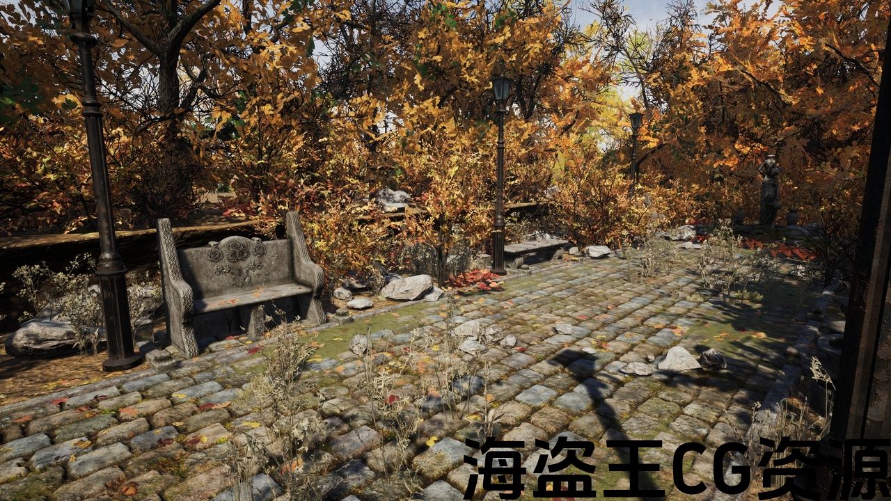 该产品有长凳,喷泉,树木,灌木丛,石头,模块化石路等等。