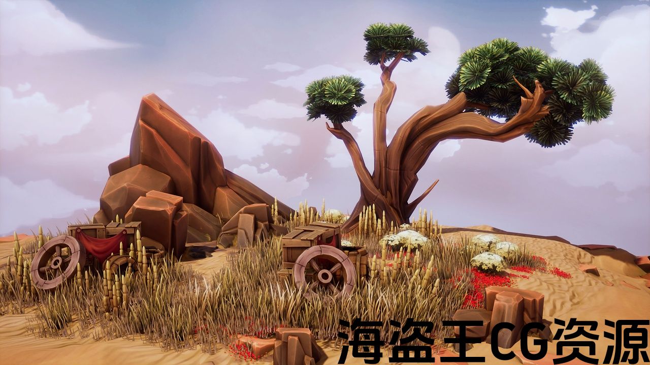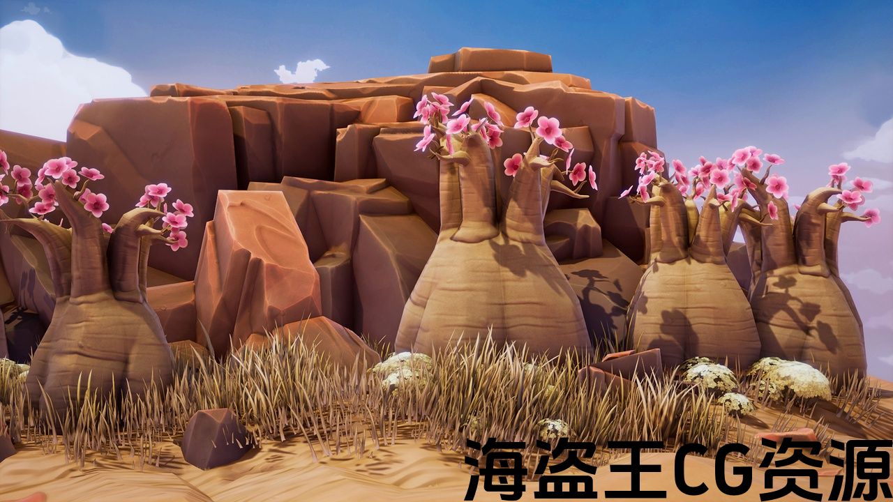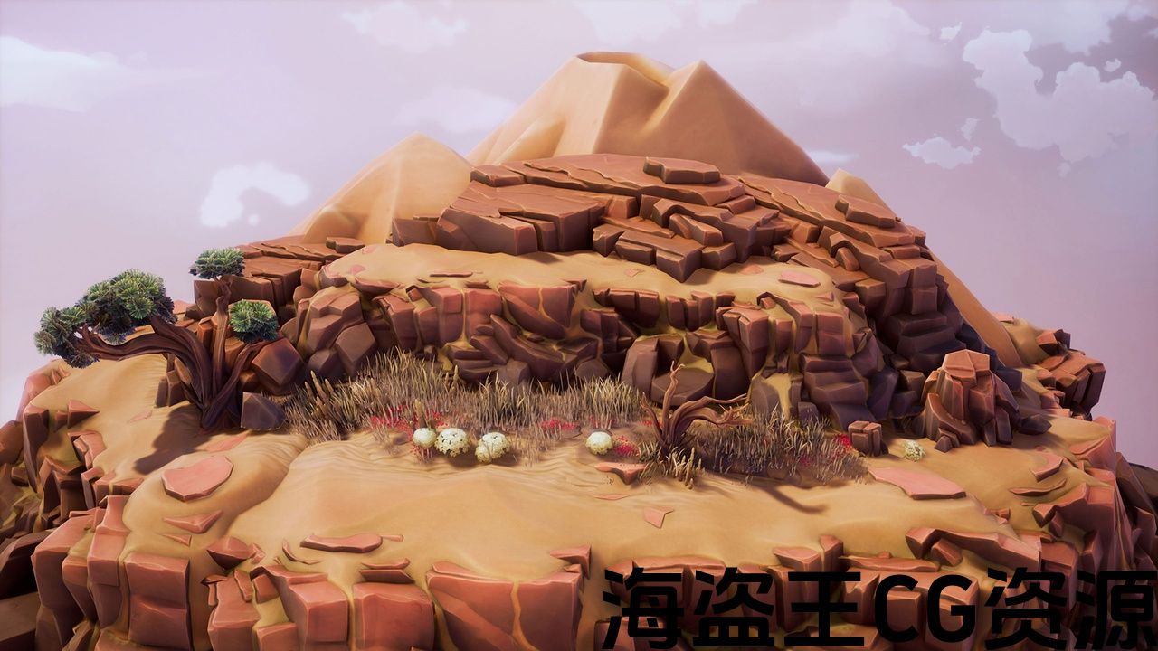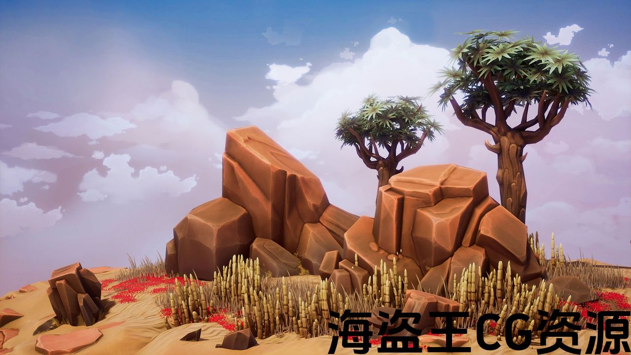 我们的深红色沙漠环境UE4的完整包包含超过30个模块化的风格化的游戏网格和材料,从岩石和巨石到草丛和灌木集群与各种类型的树木和更多。