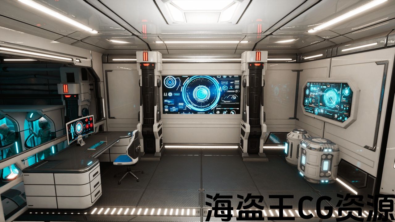 Demo Level: Modular room with two sliding doors, two skins (white/metallic)
