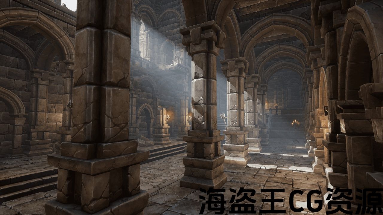 超过200个模块化零件-墙壁、地板、拱门、栏杆、柱子、楼梯等;