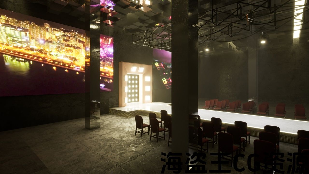 你可以使室内更小或更大,使讲台更长,增加更多的电视屏幕和改变