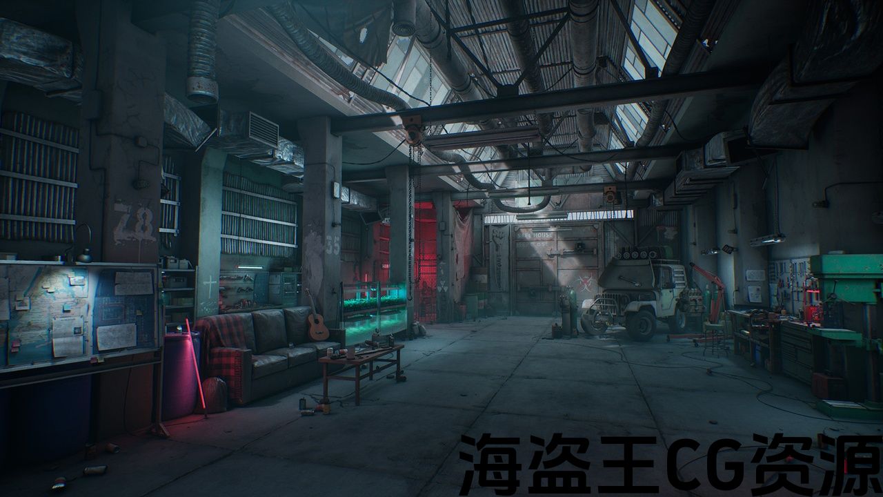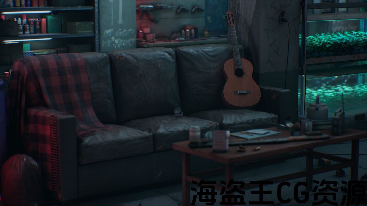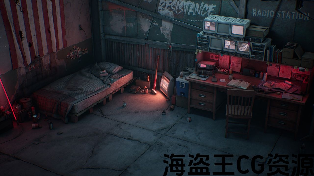 这是一个故事驱动的实时环境艺术,使用超过400个资产,具有一个后世界末日仓库,已被改造成一个安全的房子。