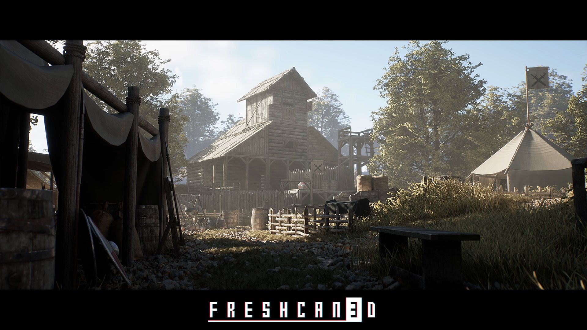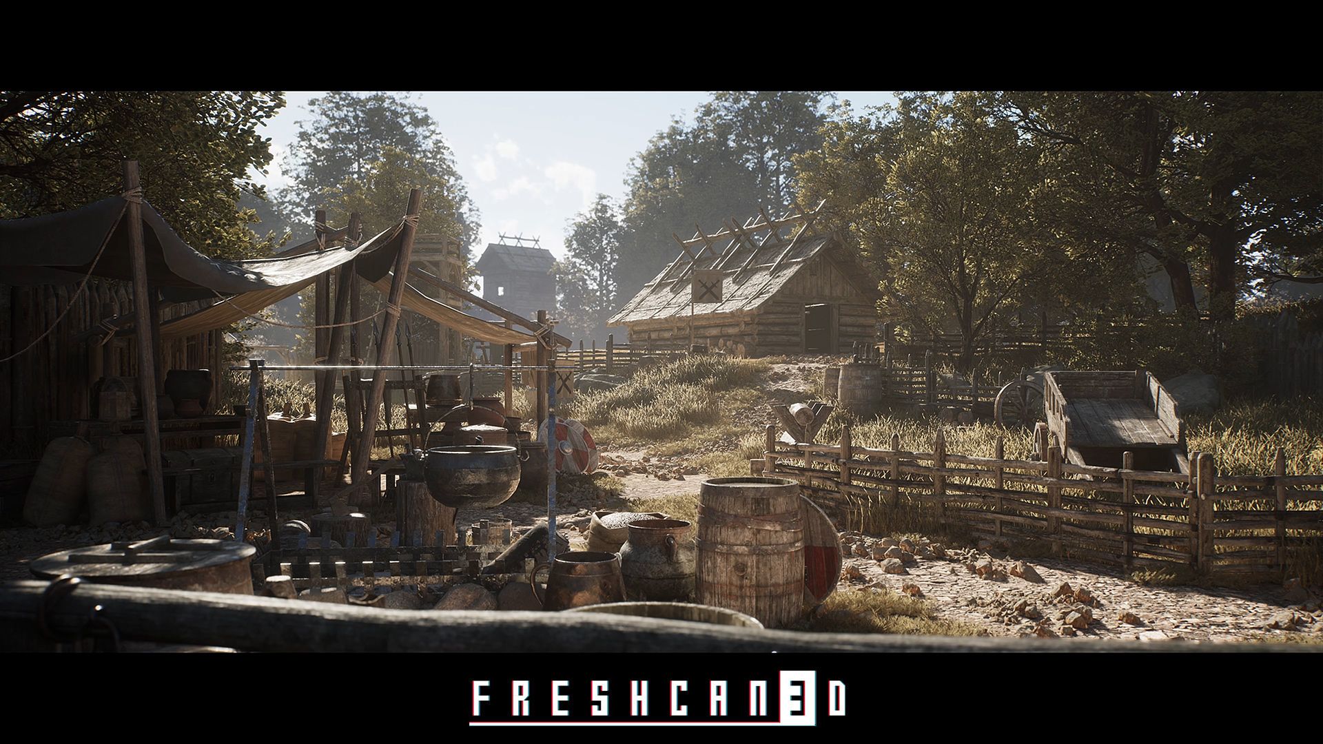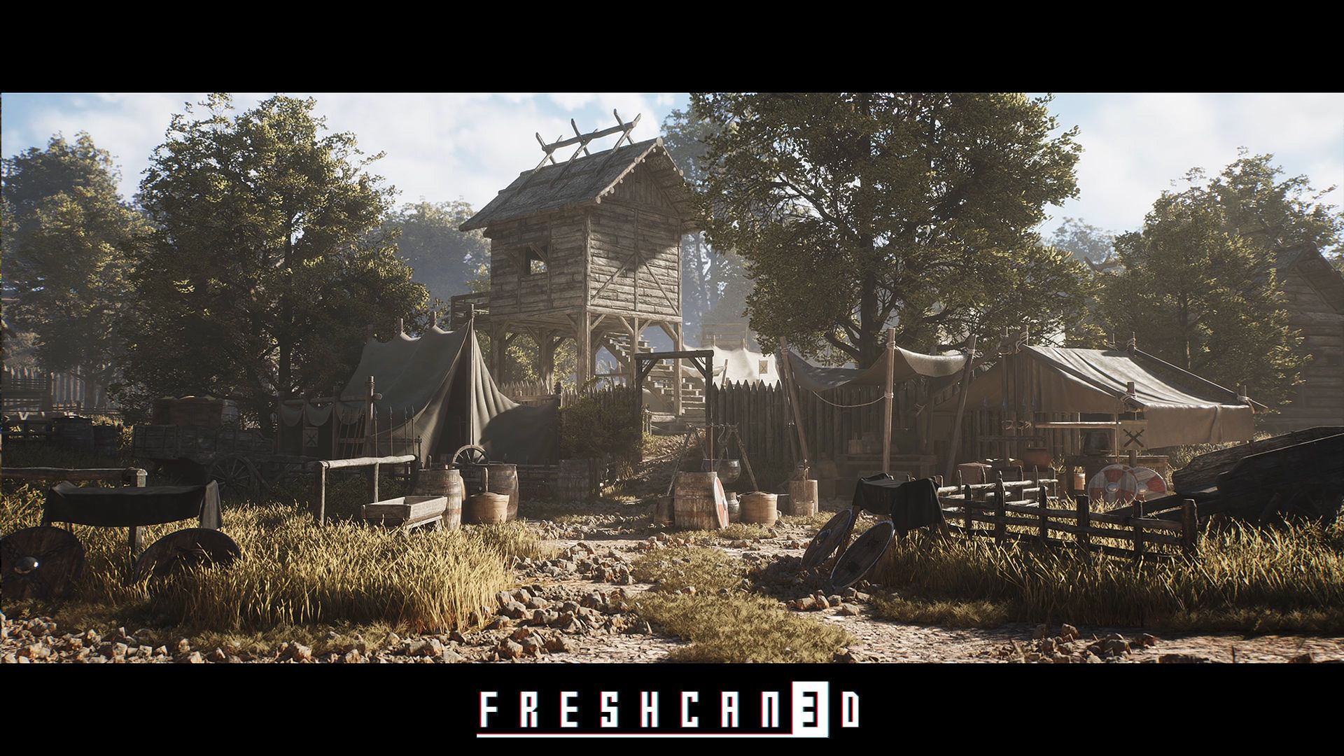 A well-optimised Medieval Village with unique props and easy to build Wooden Houses located on a HQ landscape.