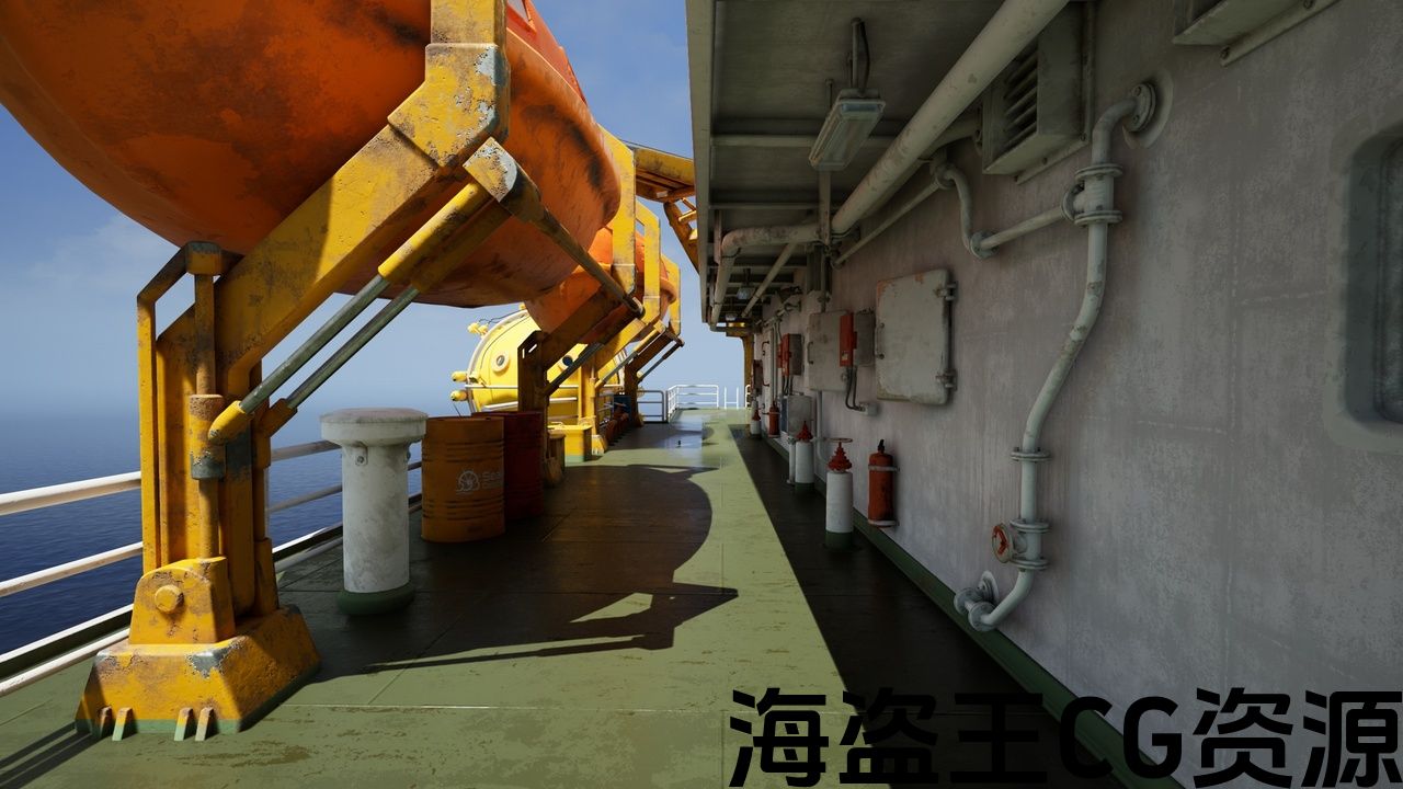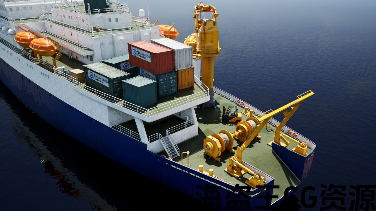This pack contains 122 meter long vessel with equipment and assets including diving capsule, cargo containers, hangar, big crane,transition room and various props