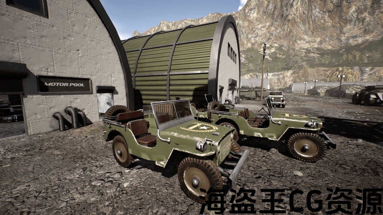 282 unique meshes are included: military props, vehicles, tents, hangars, towers, guns, boxes, barrels, bunkers and other.