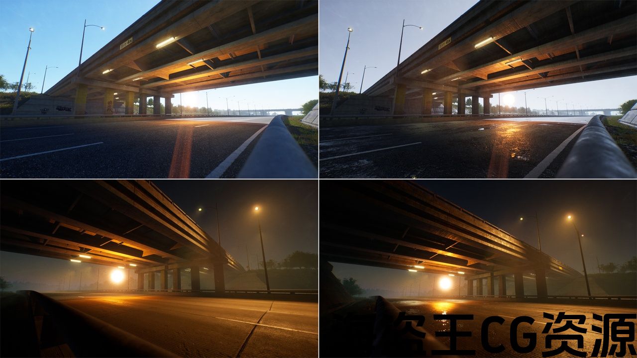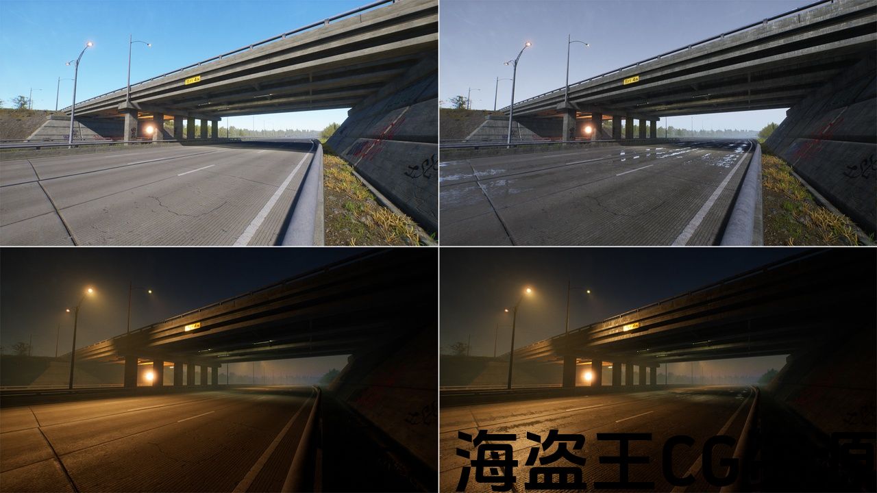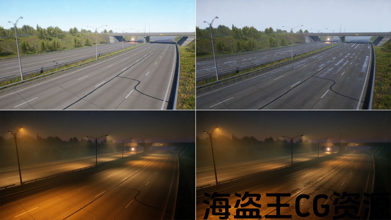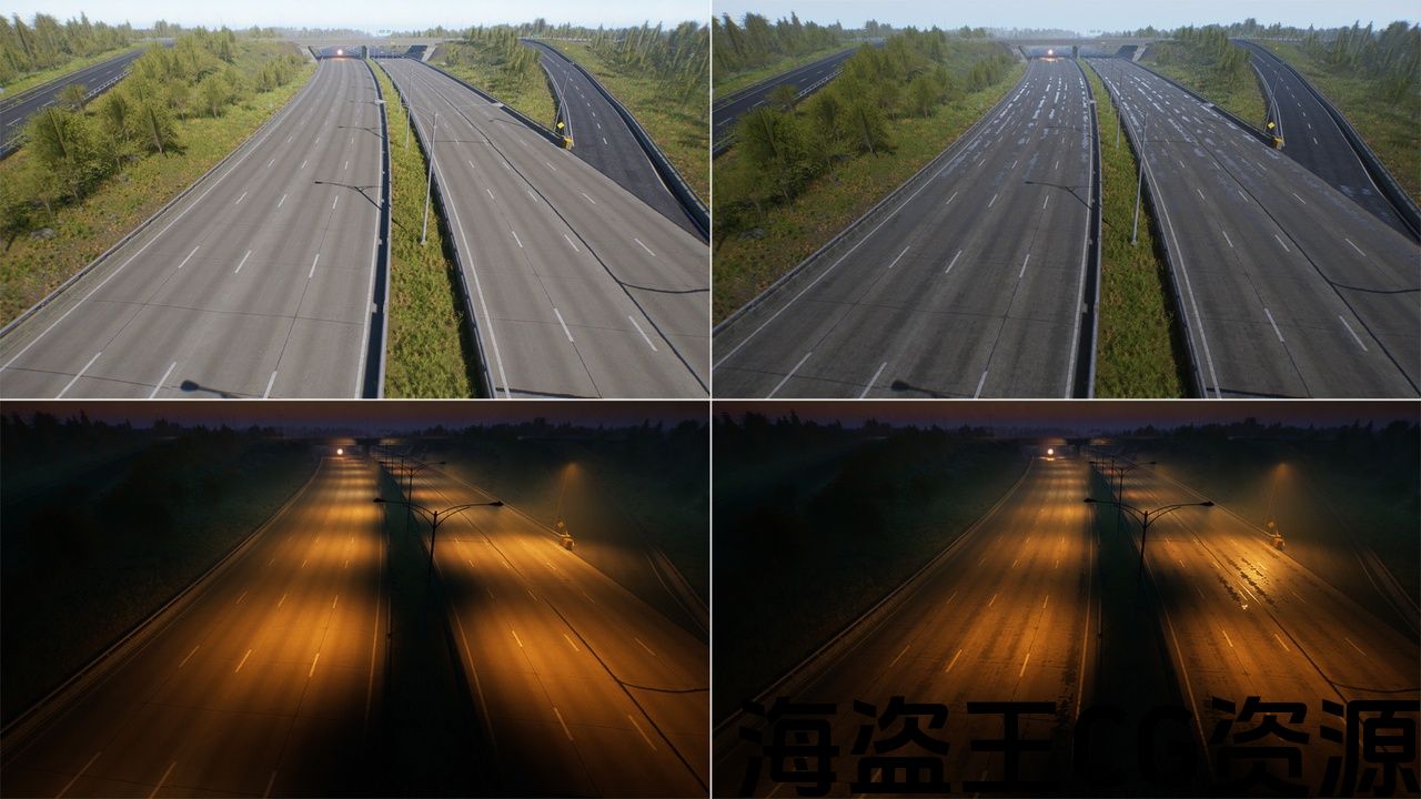 高速公路类型道路不同 边缘形状 &网格级别的细节,有额外的 复杂碰撞网格,定制Lod。 此外,这种类型的道路在边缘道路上有平面网格。 柔软的混合 与景观贴花混合面具.