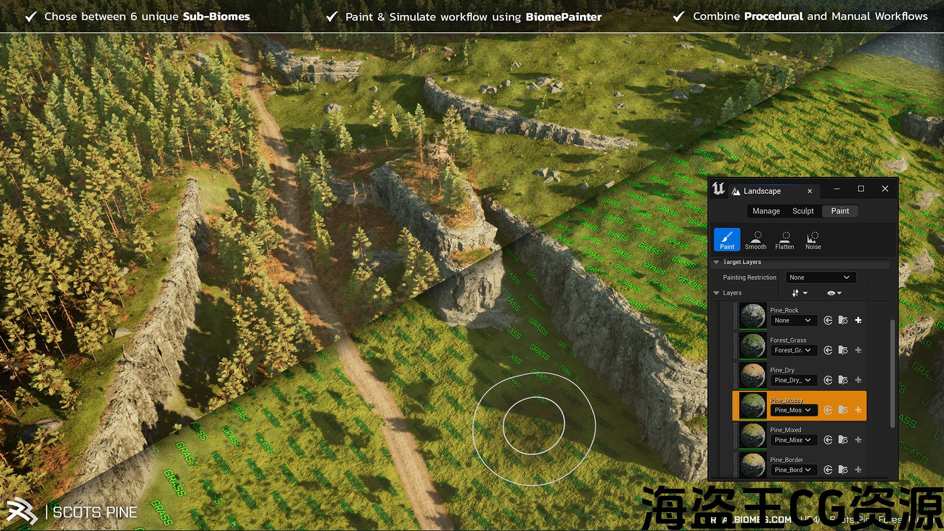 使用我们的BiomePainter工作流程快速绘制和生成不同的子生物群落,使您能够以最小的努力和时间创建令人难以置信的多样化环境。