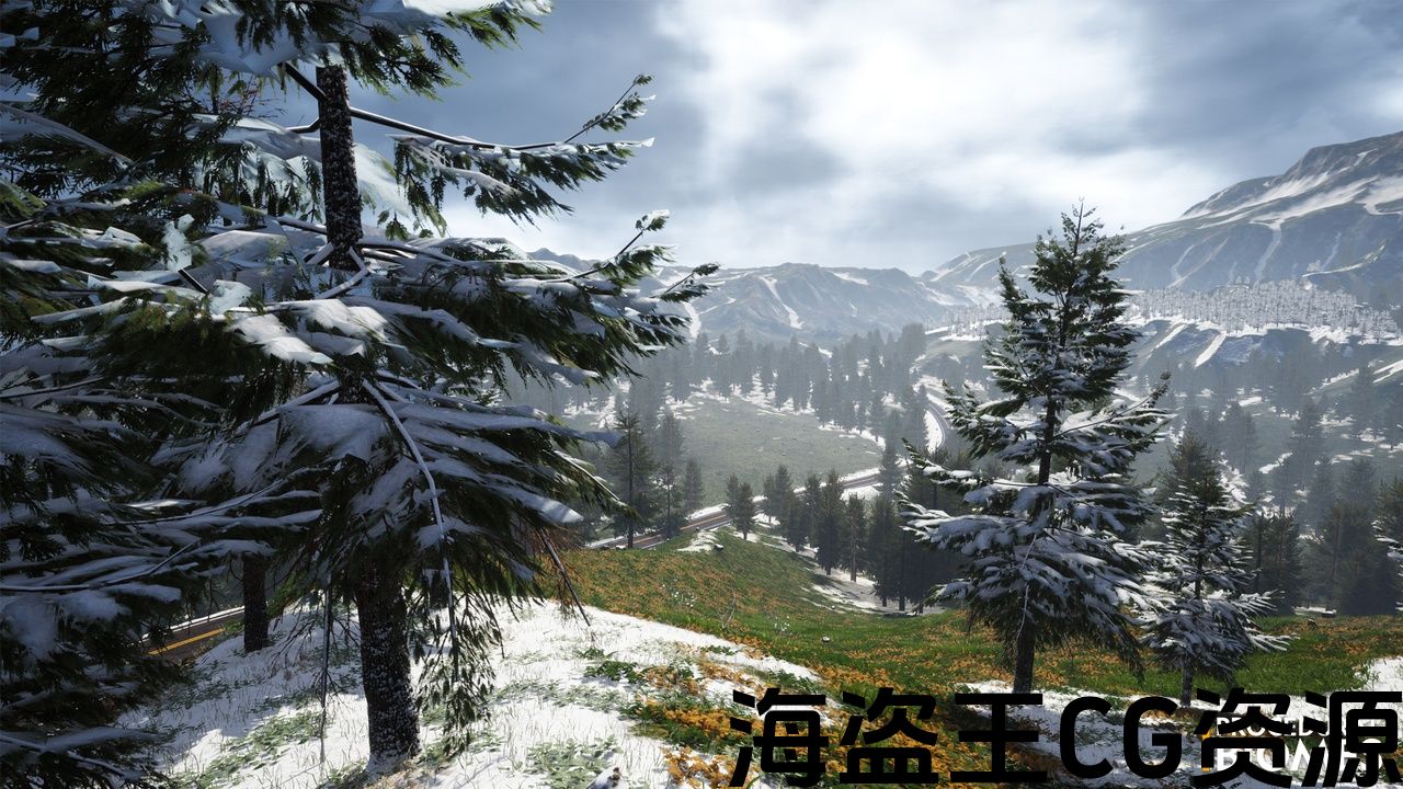 There are also Photo scanned Rocks, customizable background meshes to match any landscape, Global Wind System, basic Rain and Snow VFX (Niagara), Road mesh used as landscape spline.