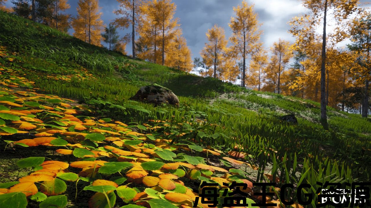 填充你的场景程序生成3个不同的生物群落。 有3个预先制作的2公里2 游戏准备的环境地图展示每个程序生物群。 每个生物群落都有独特的树木,植被和草类型。 每个生物群落都有自动地形材质,包含6个地形图层、10种草类型和随时可用的运行时虚拟纹理资源。