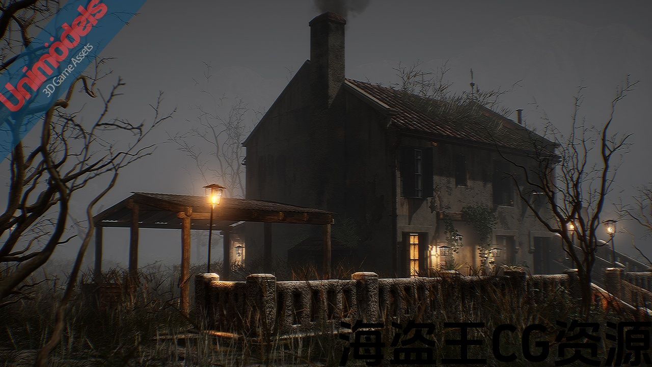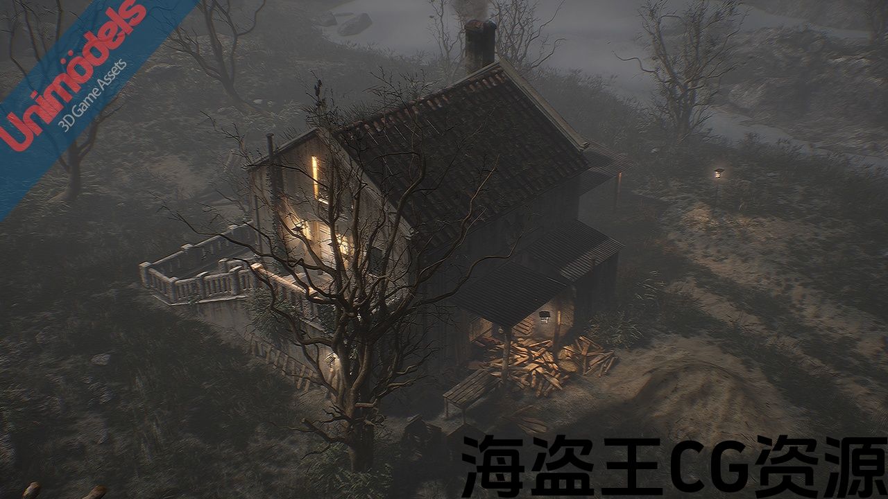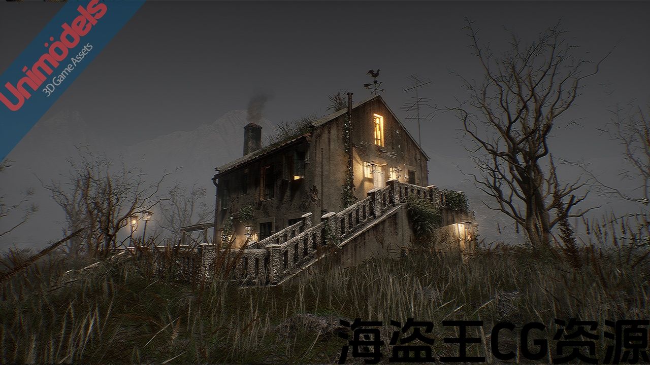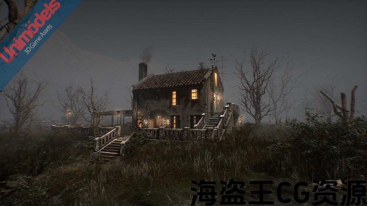 该包包含游戏资产准备设计一个外部场景,包括一个房子,河流,山脉,树木,各种植物,景观,完全模块化。