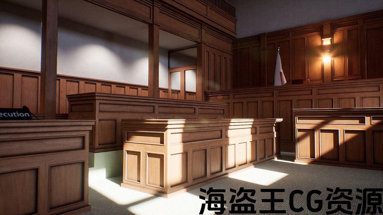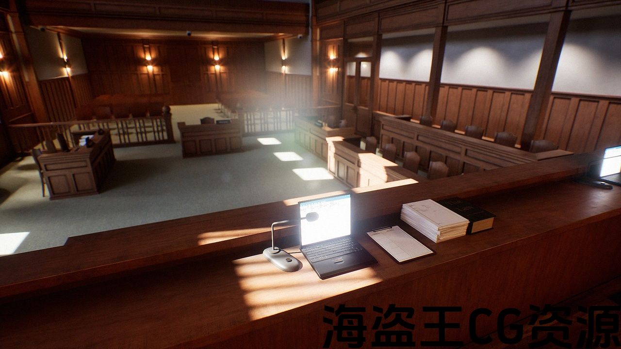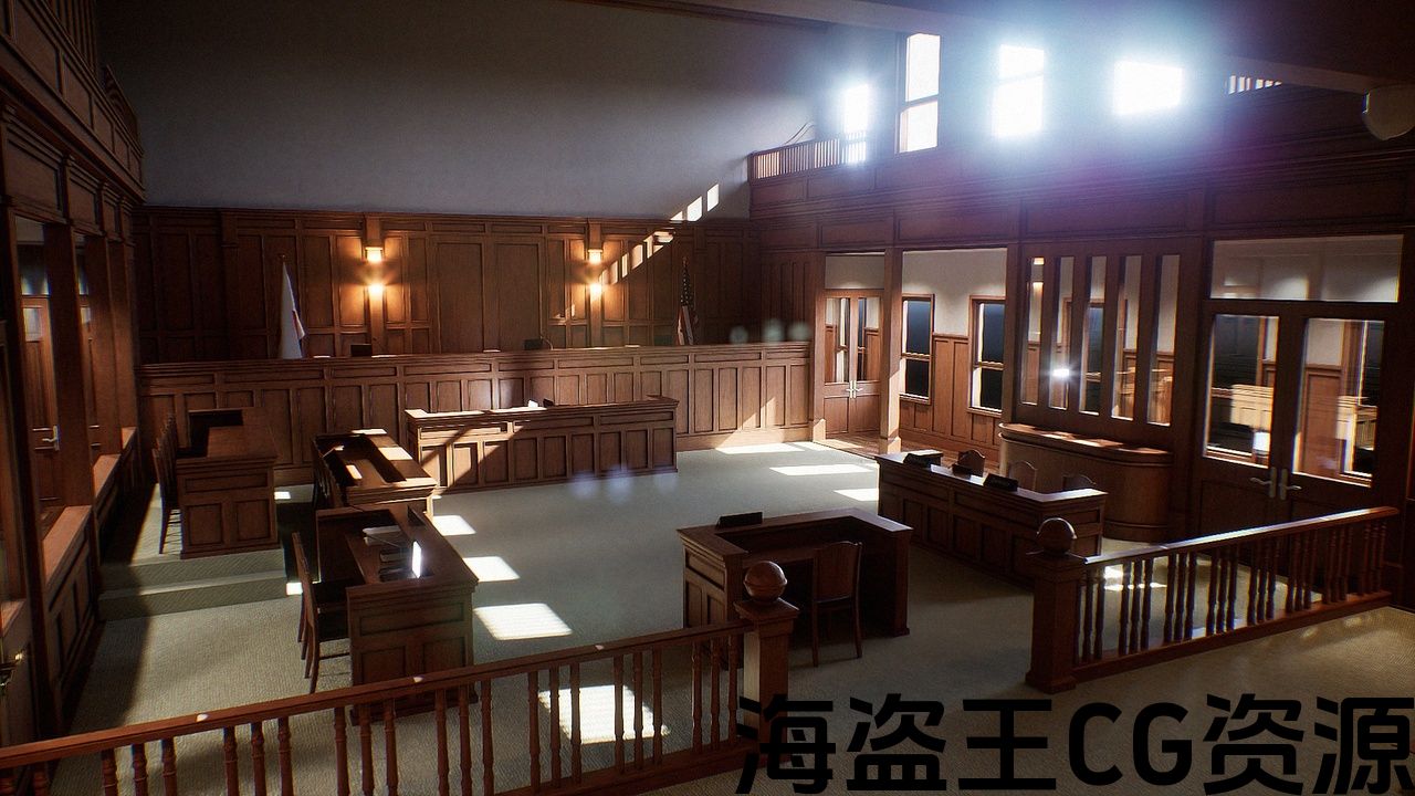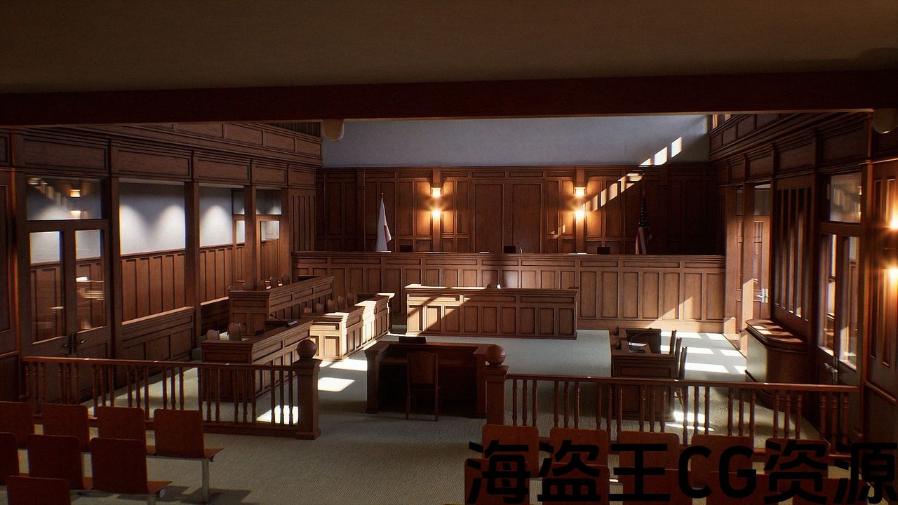 A courtroom environment for use in various use cases, such as animation, games or VR.