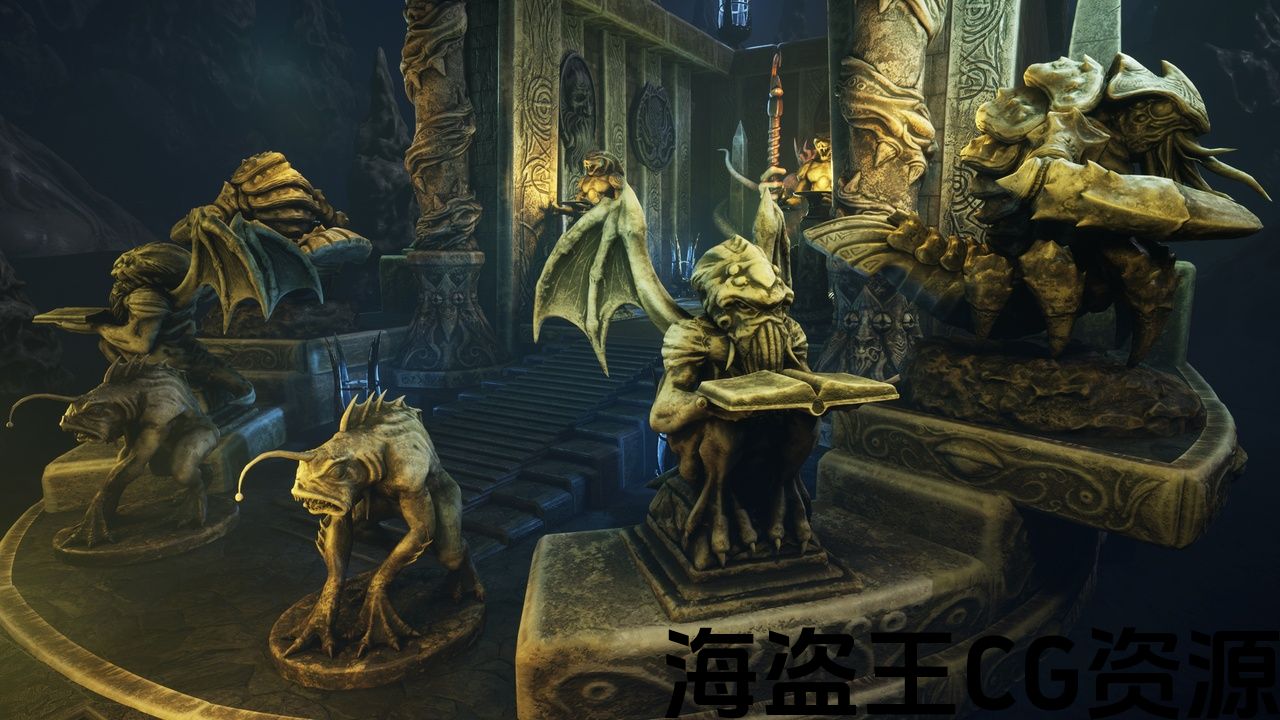 在这里你可以找到几个非常详细的”深渊”风格的雕像和建筑元素,你可以用它来制作你自己的寺庙。
