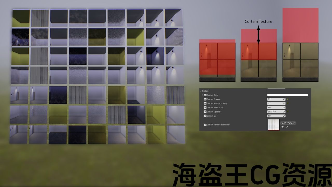 此材质包含许多参数,您可以轻松更改已创建或下载的立方体贴图纹理,并且可以通过将其带到您想要的比例来创建虚假的内部环境。