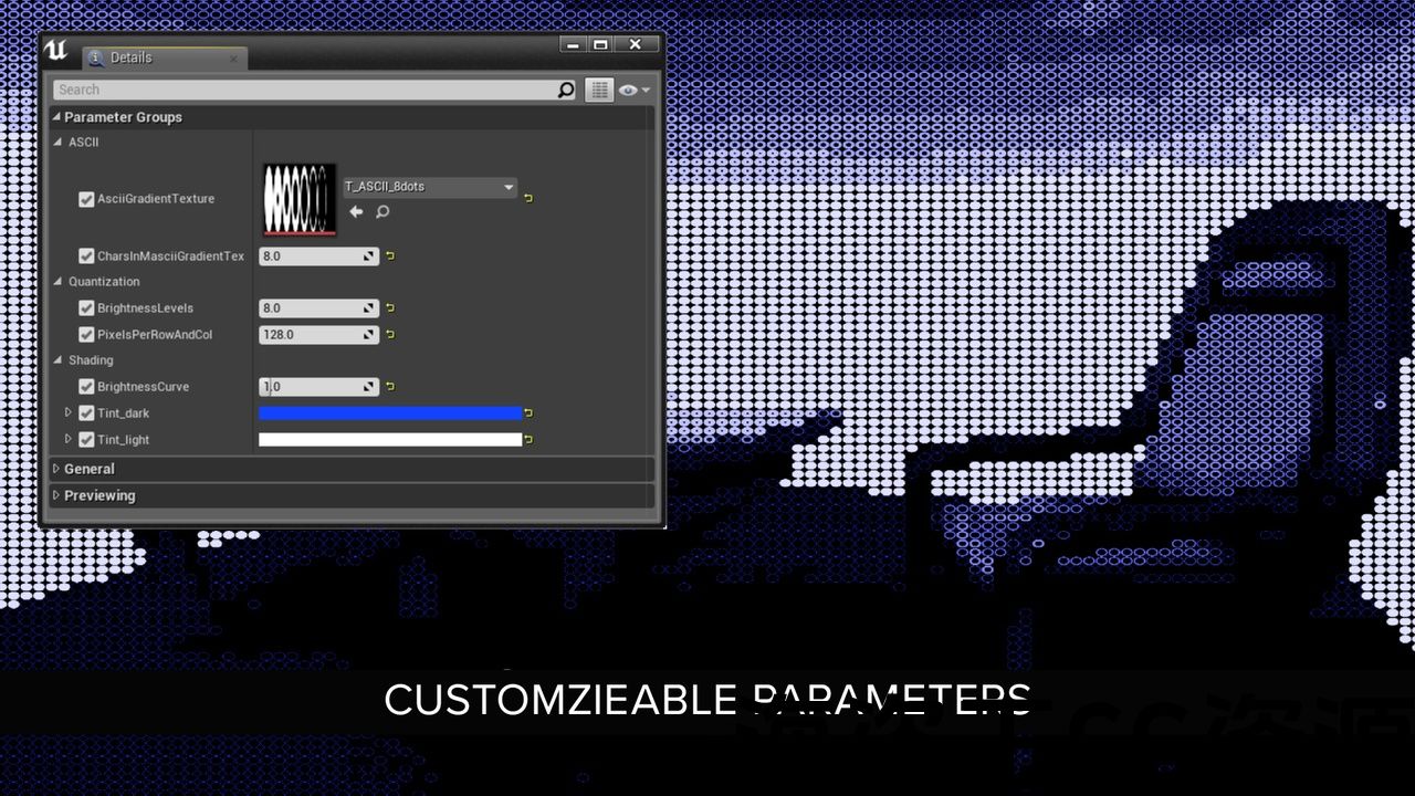 论坛帖子: https://forums.unrealengine.com/unreal-engine/marketplace/1521968-ascii-post-process-material