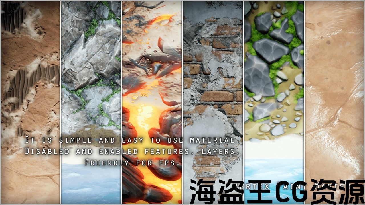 You can draw, as well as automatically create the following things on the model: water, puddles, water flowing down, dirt, moss and other spraying on the top, or on the selected side, automatically and manually, + connected Triplanar. Also there are destructions of the semi-automatic mode, or manual, as well as the generation of Normals along the edge of the transition from high to low. Plug-in detailing for large objects. All blendings are carried out according to the Height Map of the corresponding Layer.