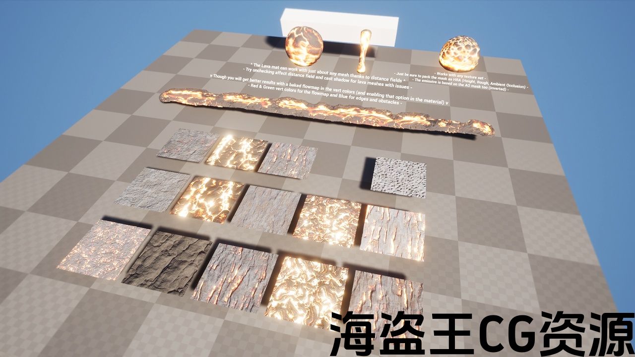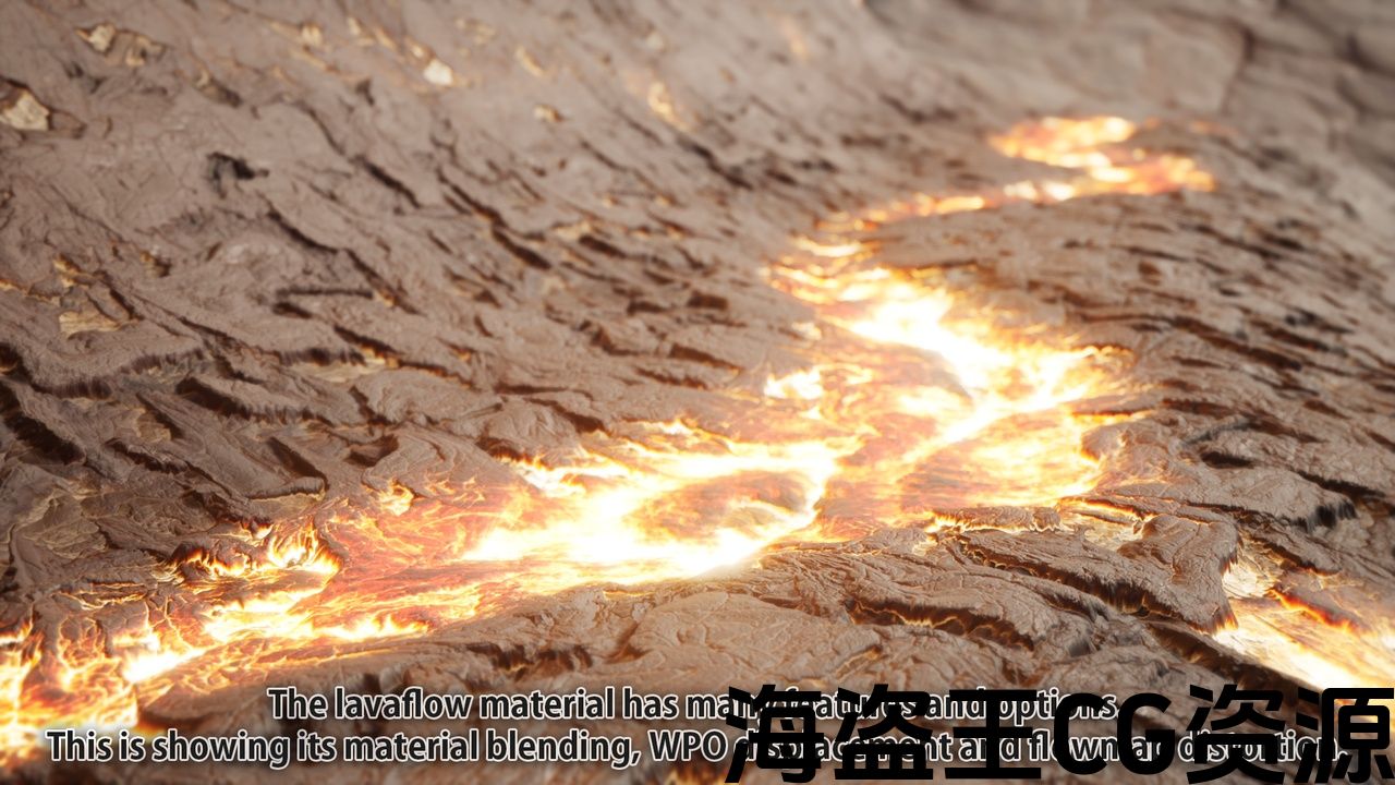 - Lavaflow材质(混合2个纹理集,可选输入的流动画,WPO位移等)
