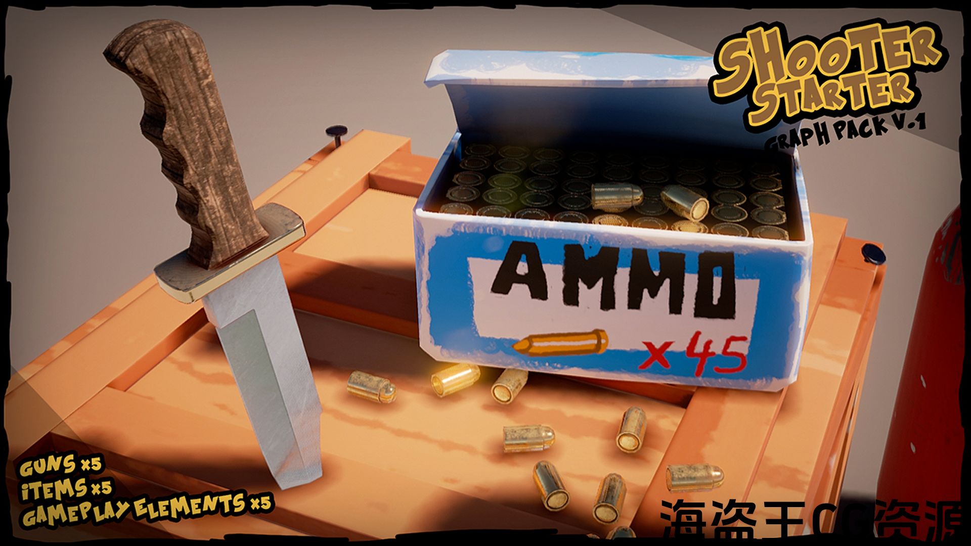 ShooterStarter GraphPack包括5武器,5物品和5游戏元素,以有趣的设计自定义您的游戏玩法。