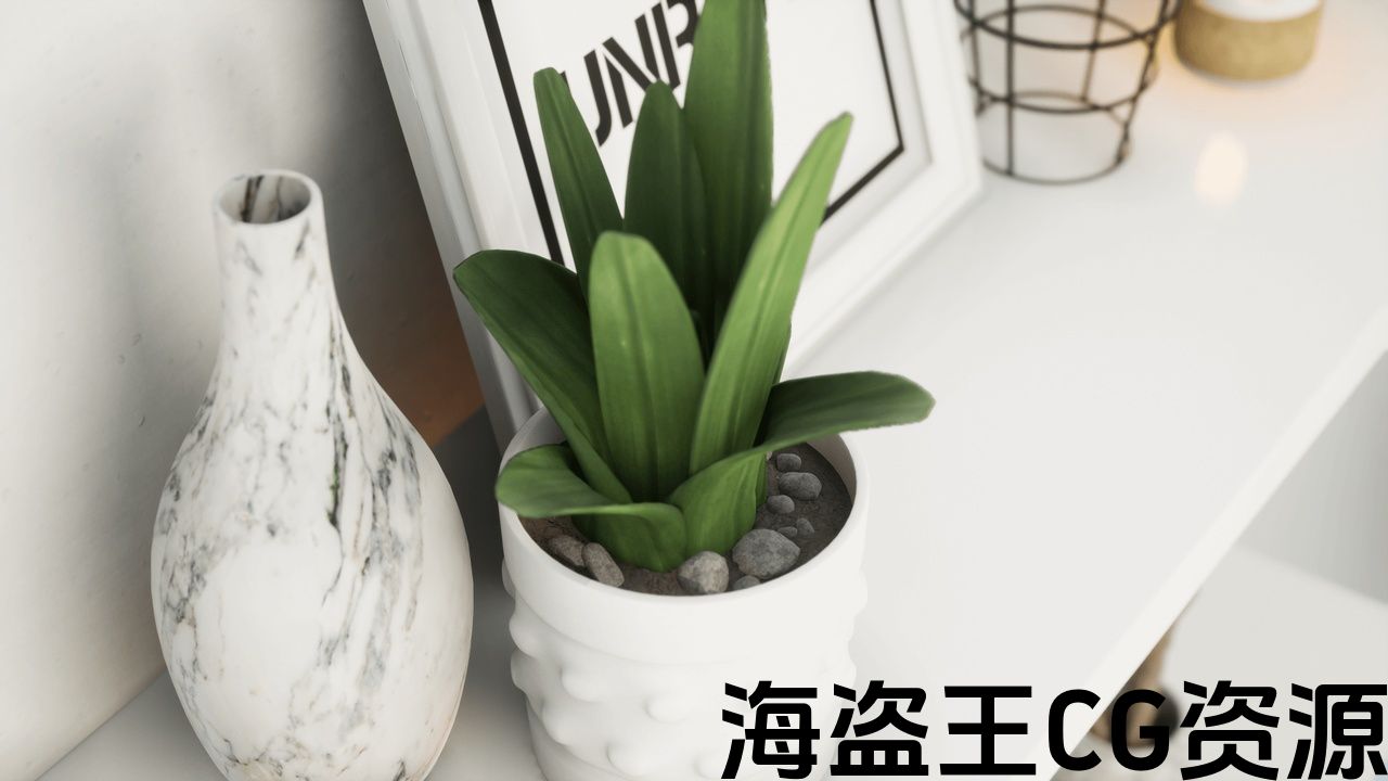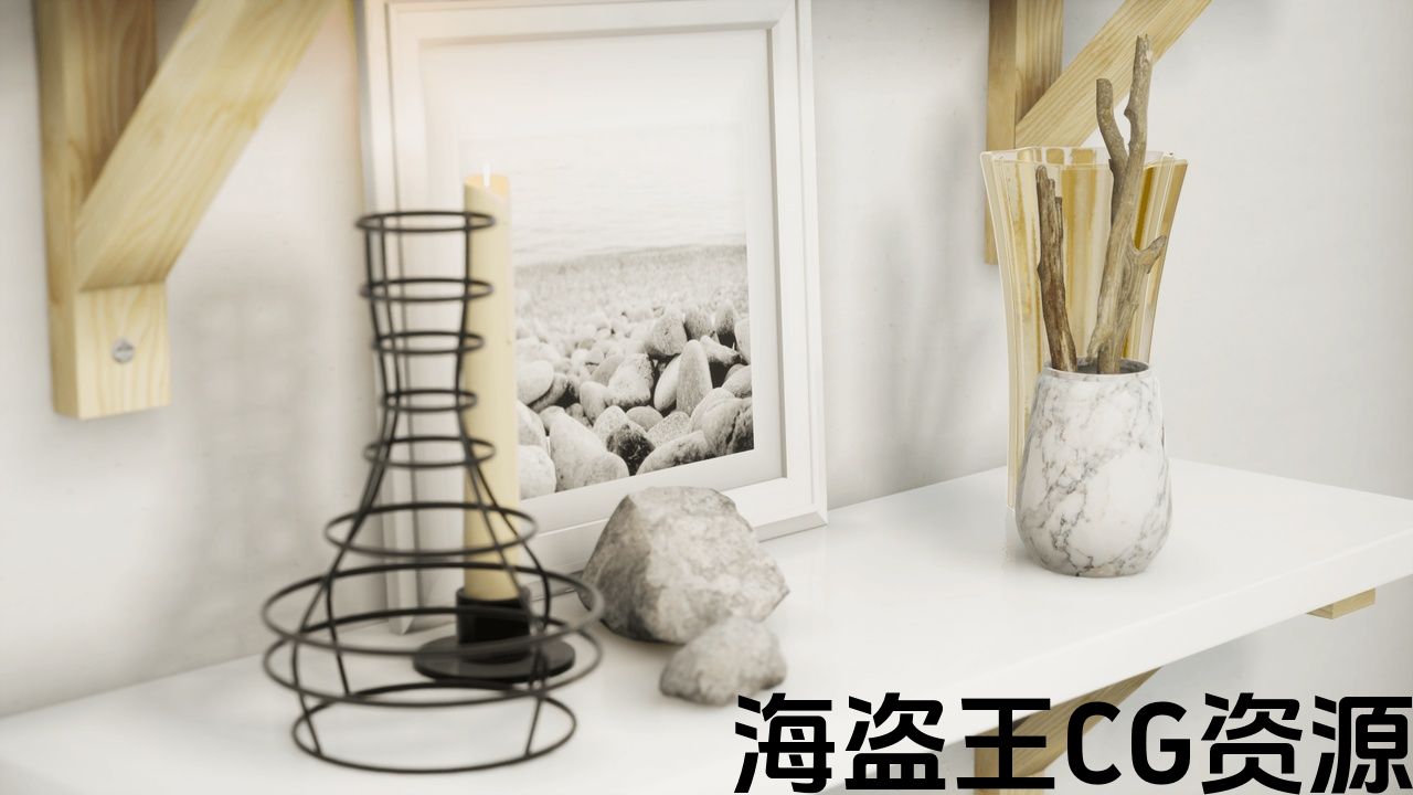 The pack contains the scene of 5 shelf-sets with decor items and different materials.