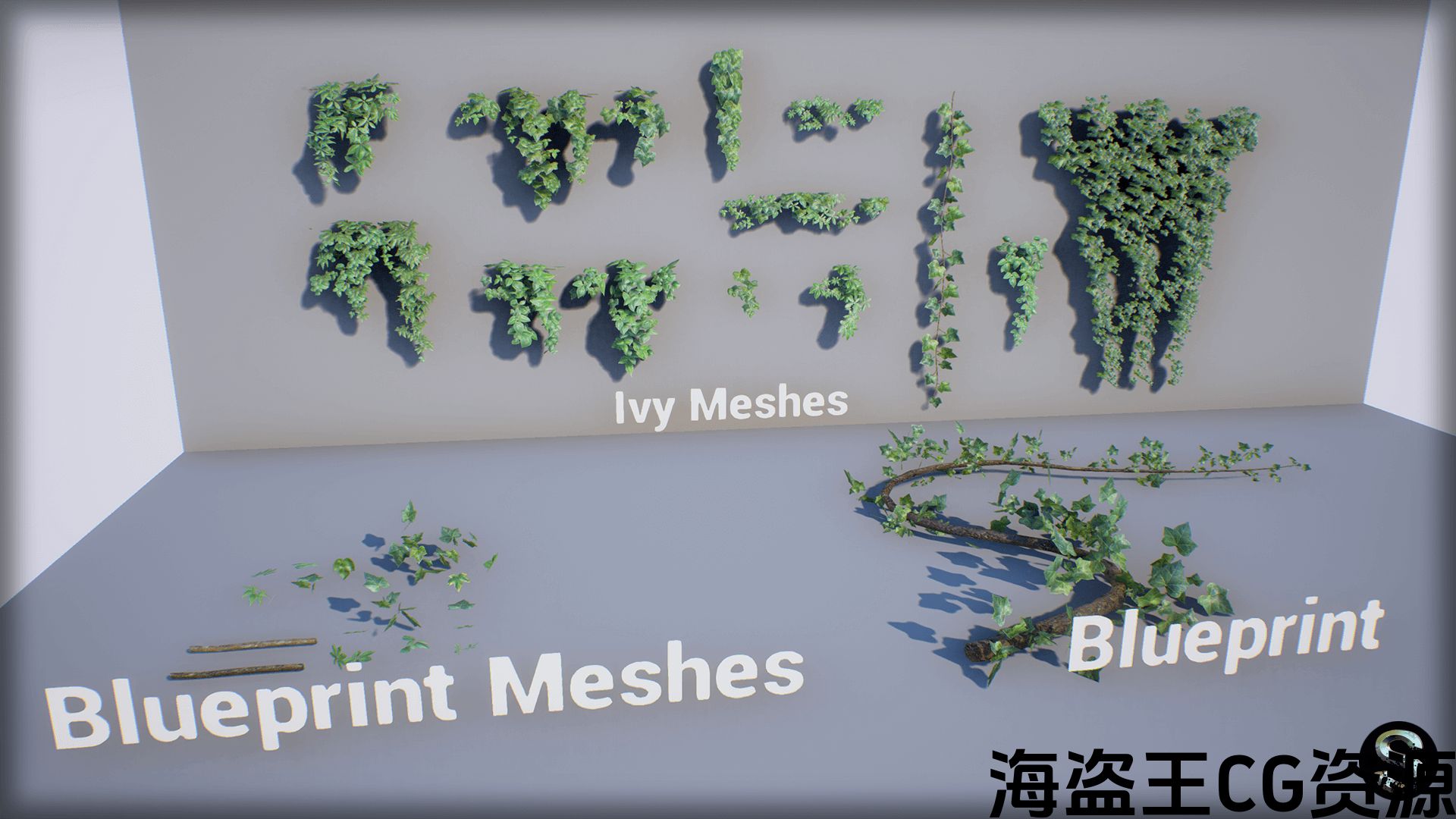 包装高品质的常春藤和藤蔓。 它包含几个网格体和完全可自定义的蓝图,以创建任何ivy。
