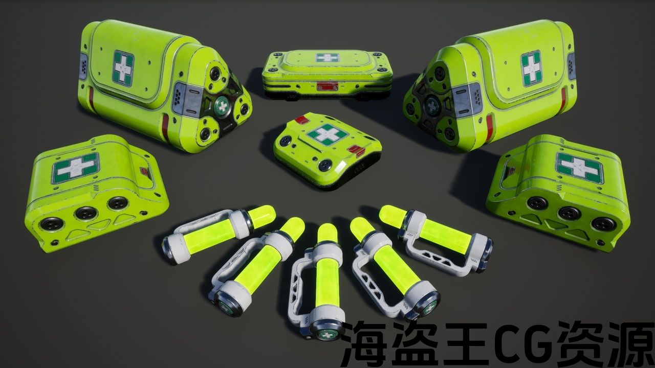- 2中型急救箱,采用传统包装形式,具有科幻外观。